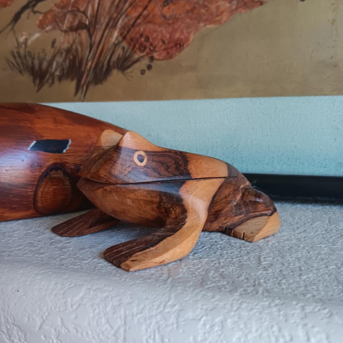 HAND CARVED DUCK FROM ESTES PARK AND A CARVED FROG