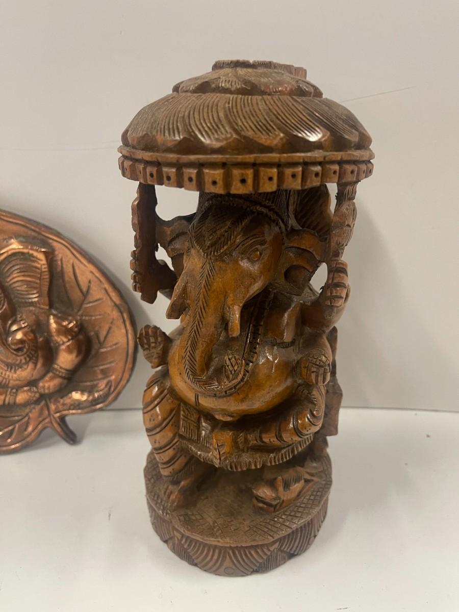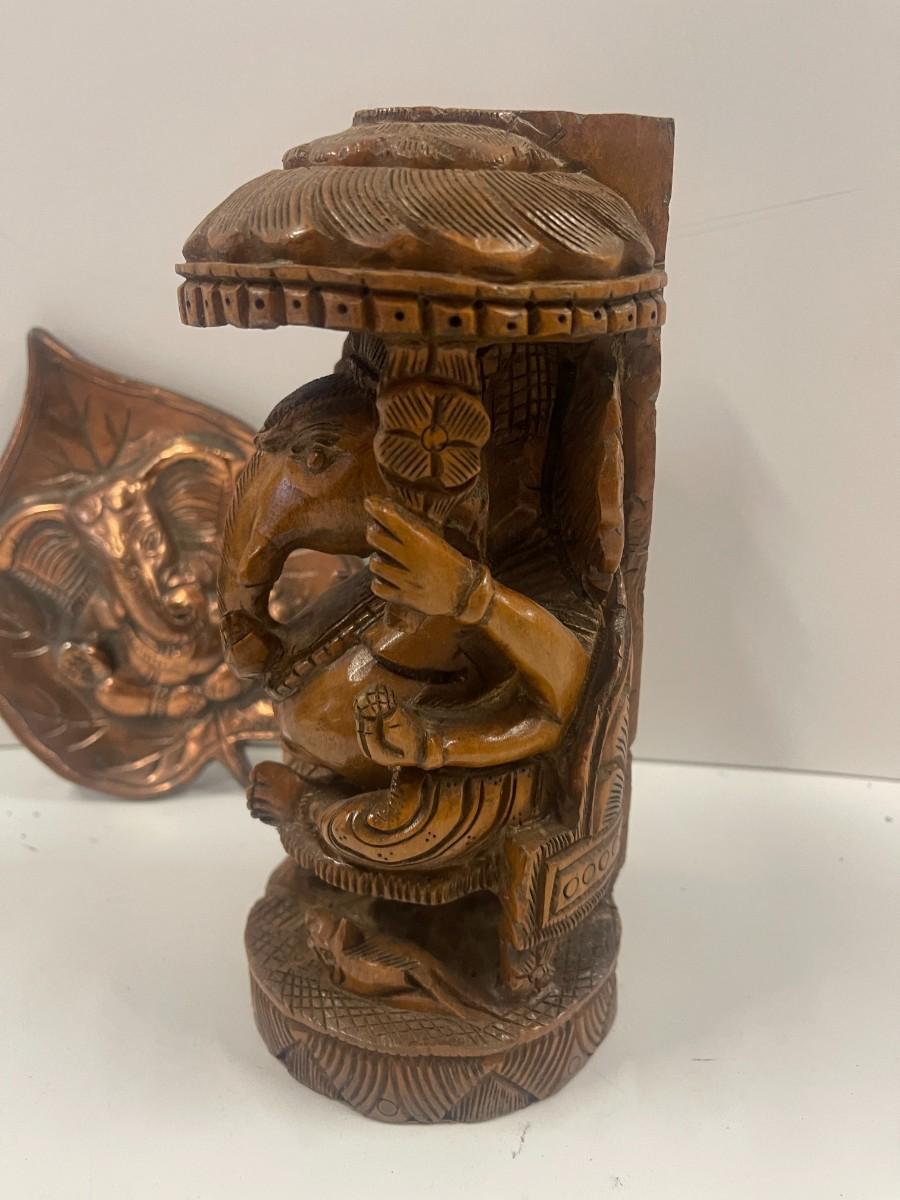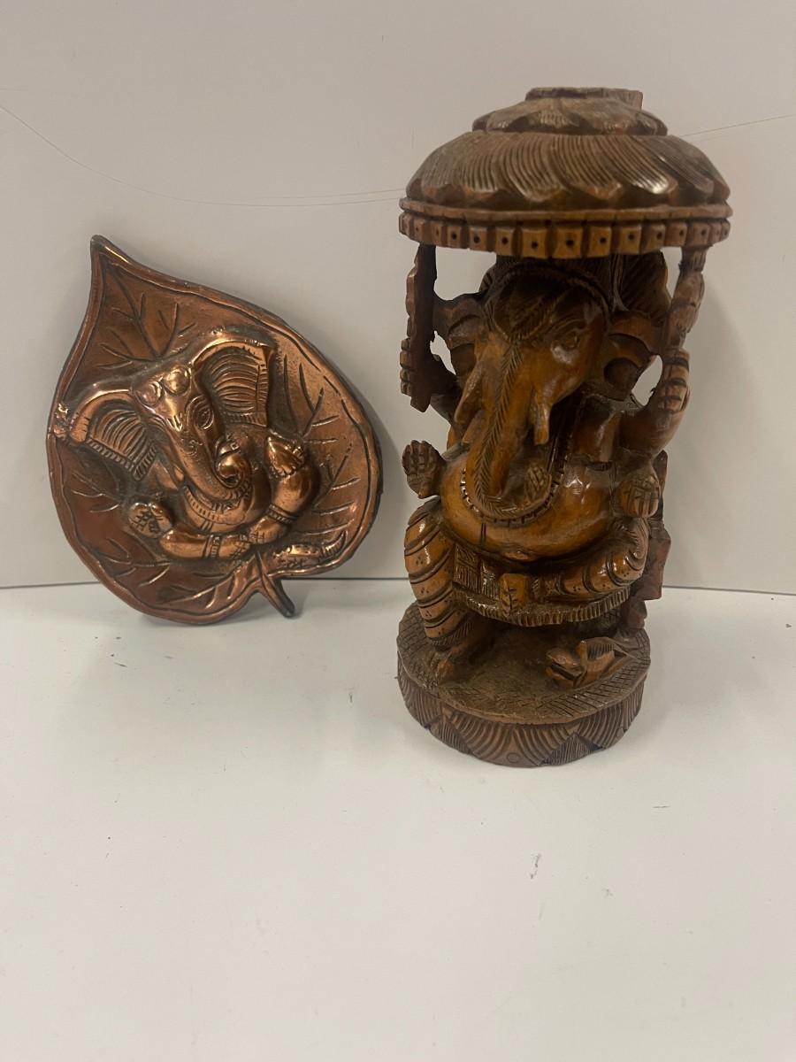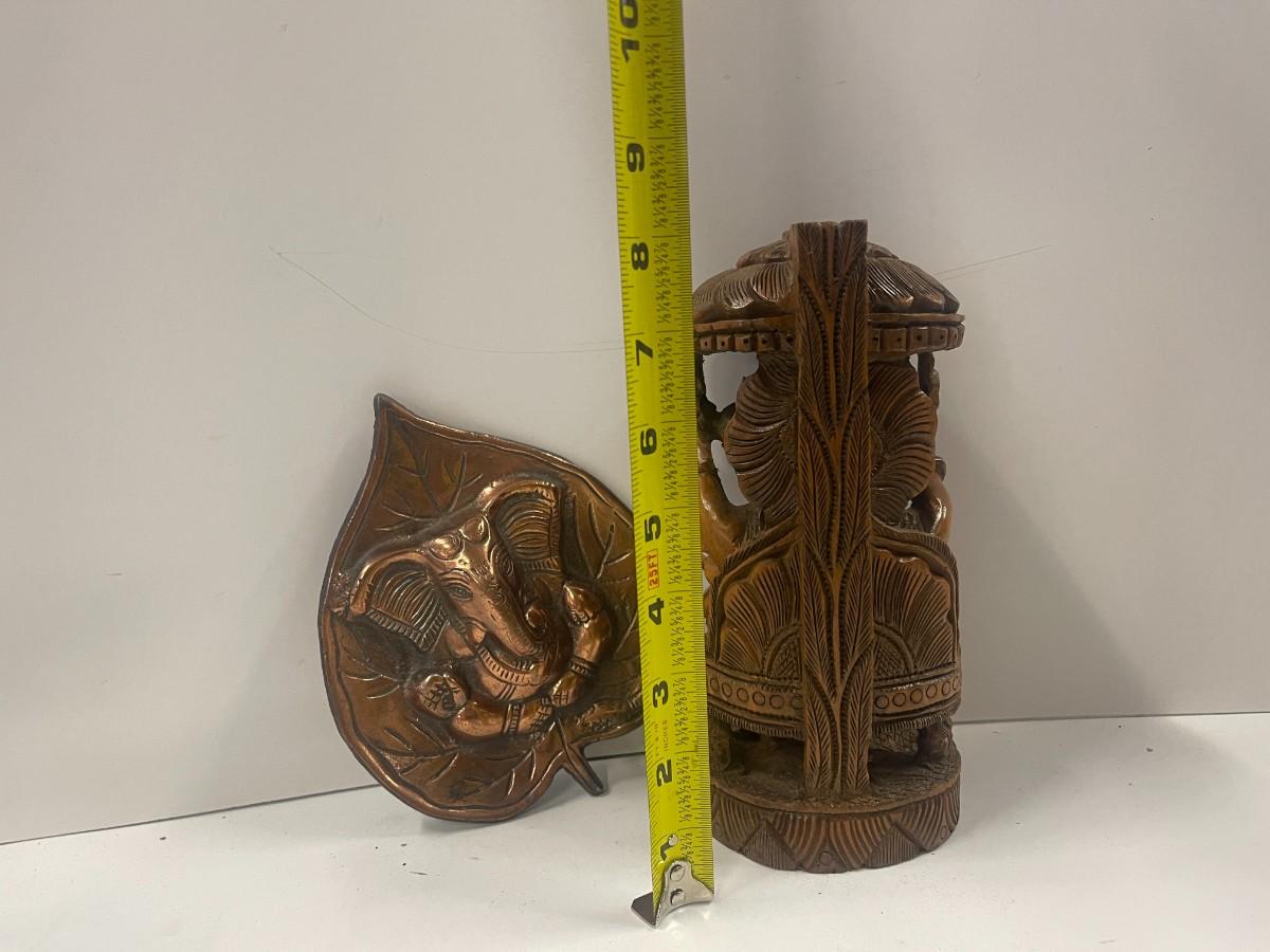 Hand Carved Elephant Figure & Metal Elephant Wall decor