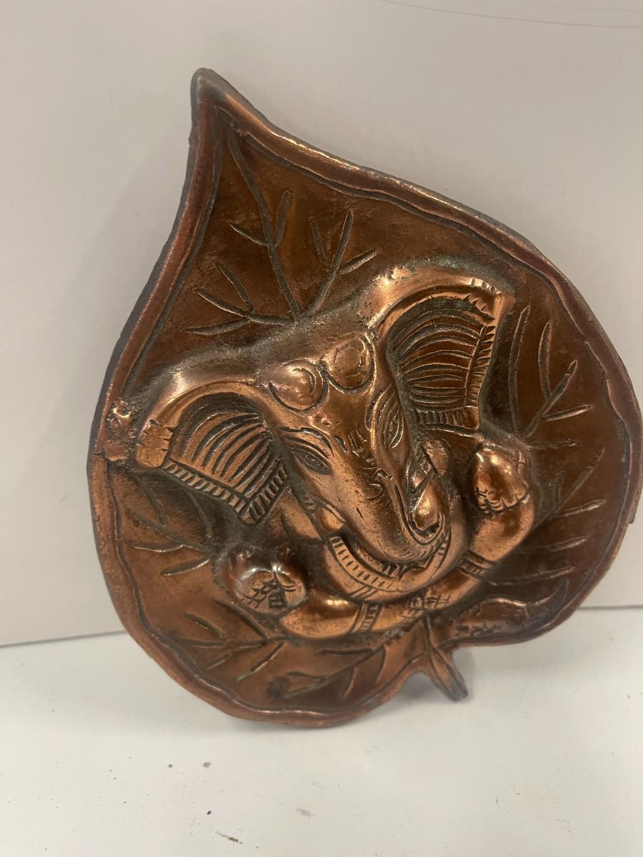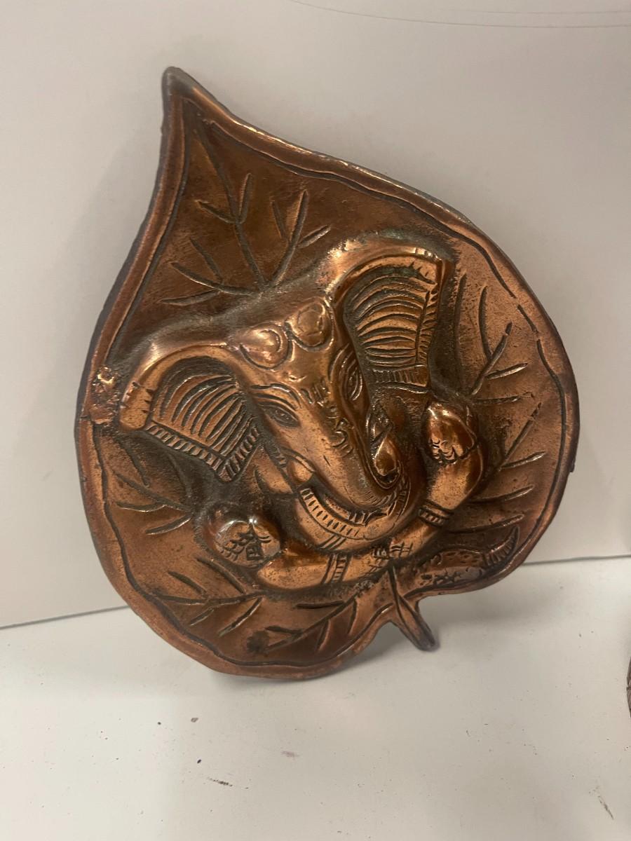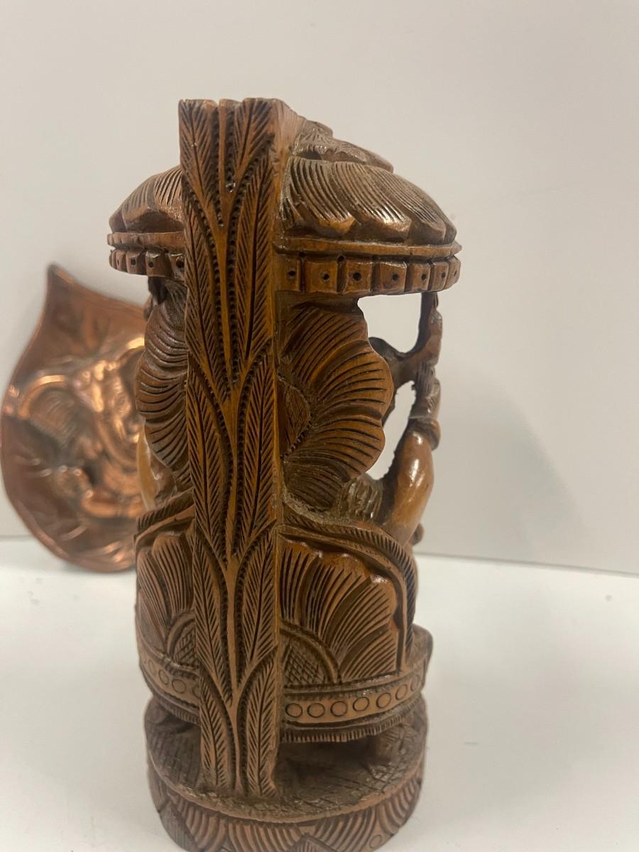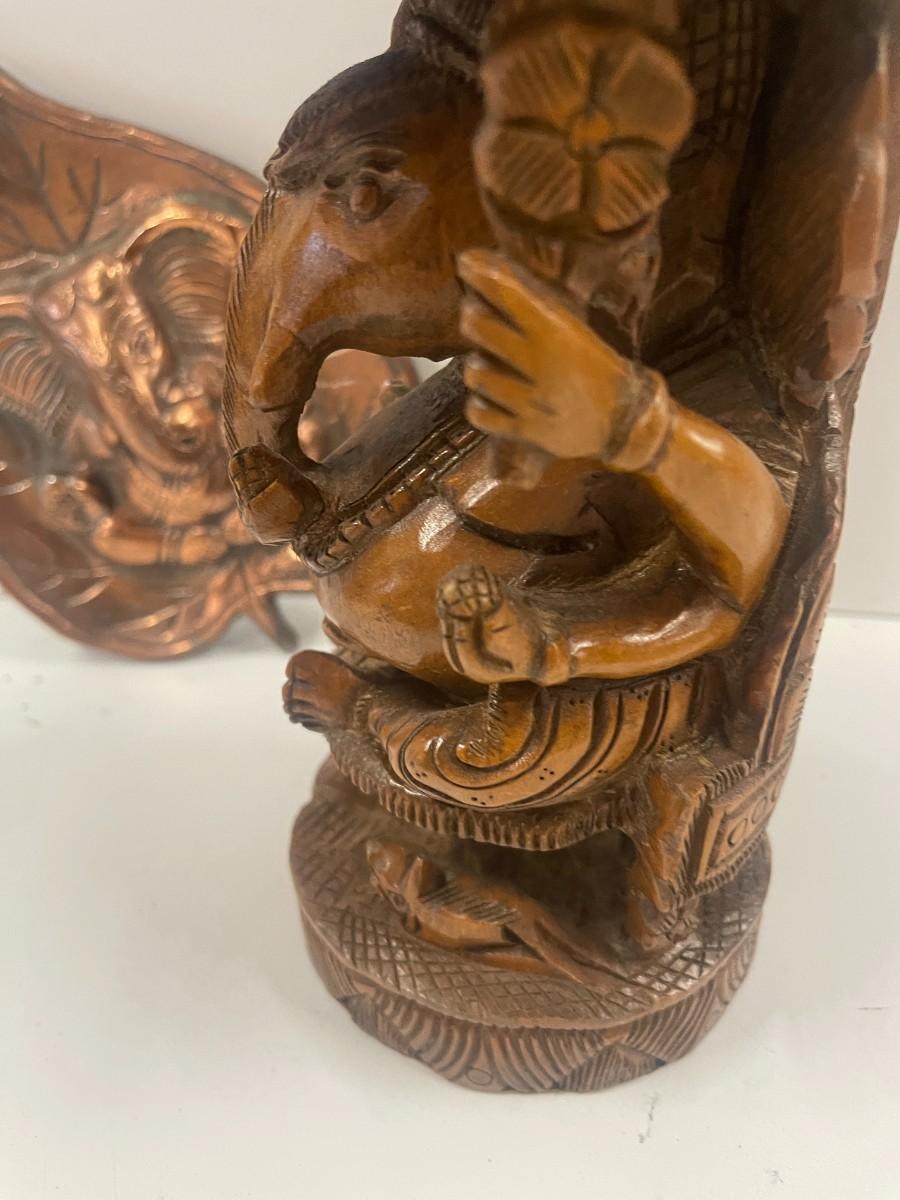 Hand Carved Elephant Figure & Metal Elephant Wall decor