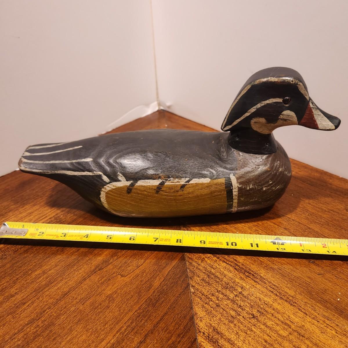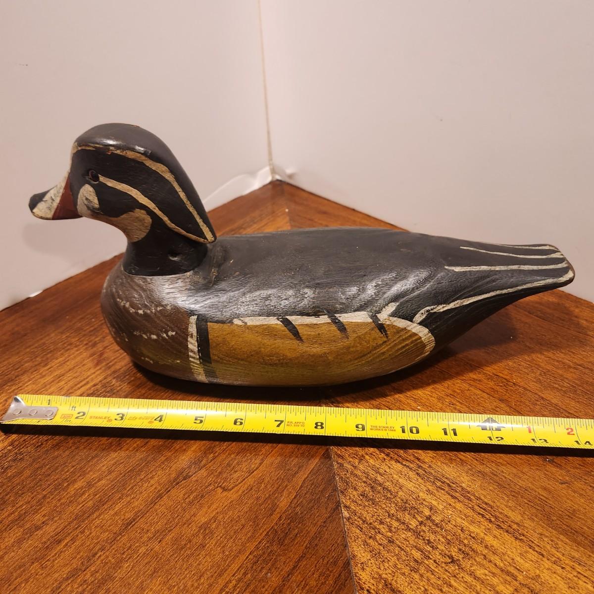 Hand Carved Wood Duck Decoy Signed FF