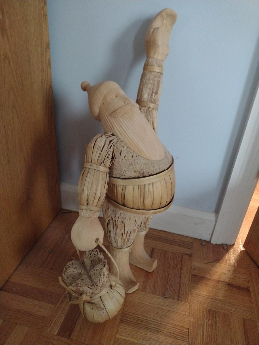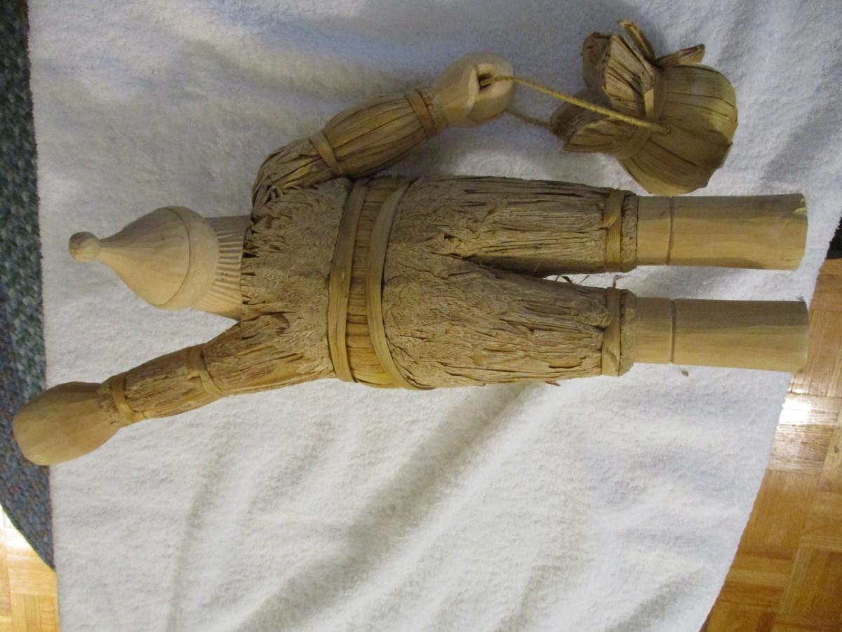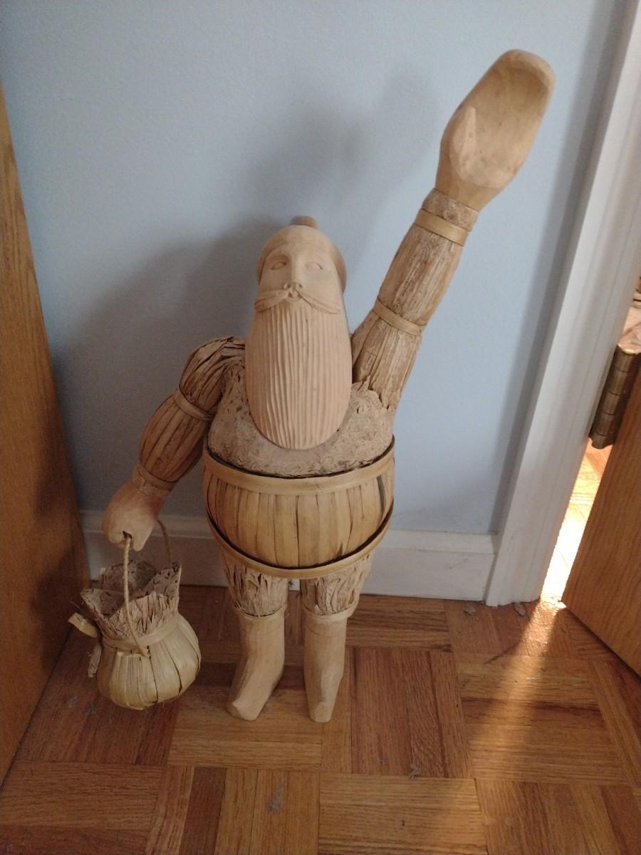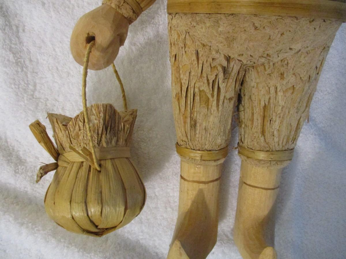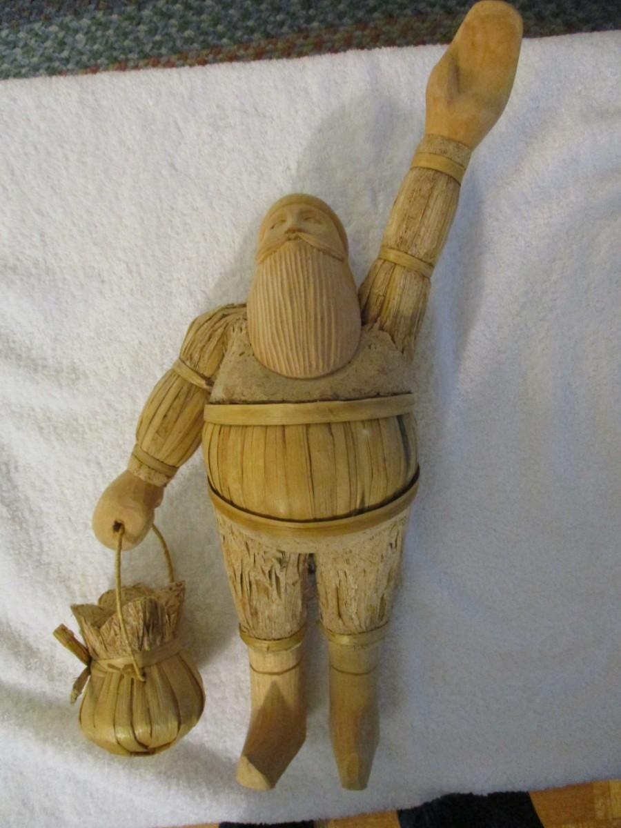 Hand Carved Folk Art Wood Straw Corn Husk Santa - A