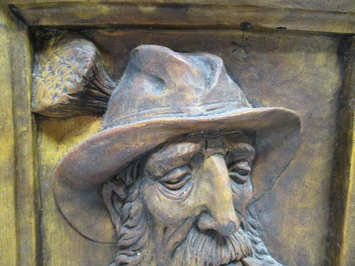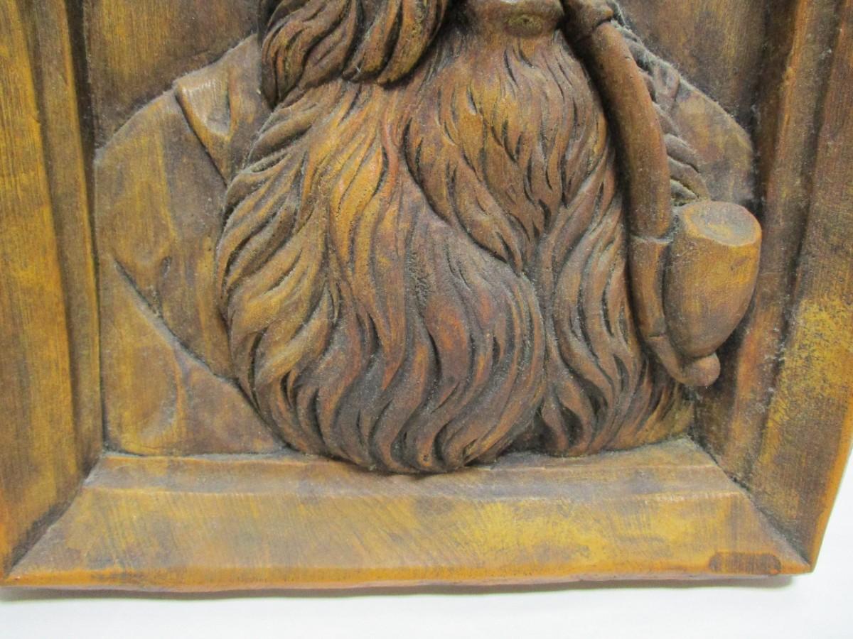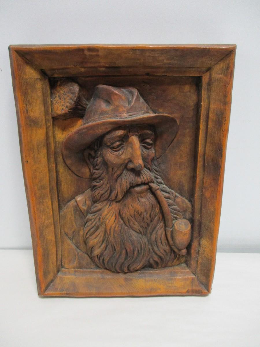 Hand Carved German Sculpture Picture Old Man w/ Hat & Pipe
