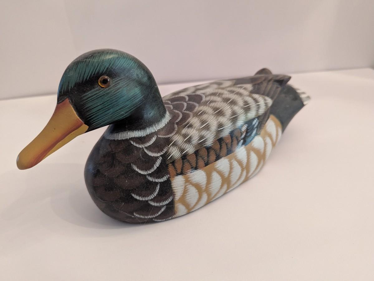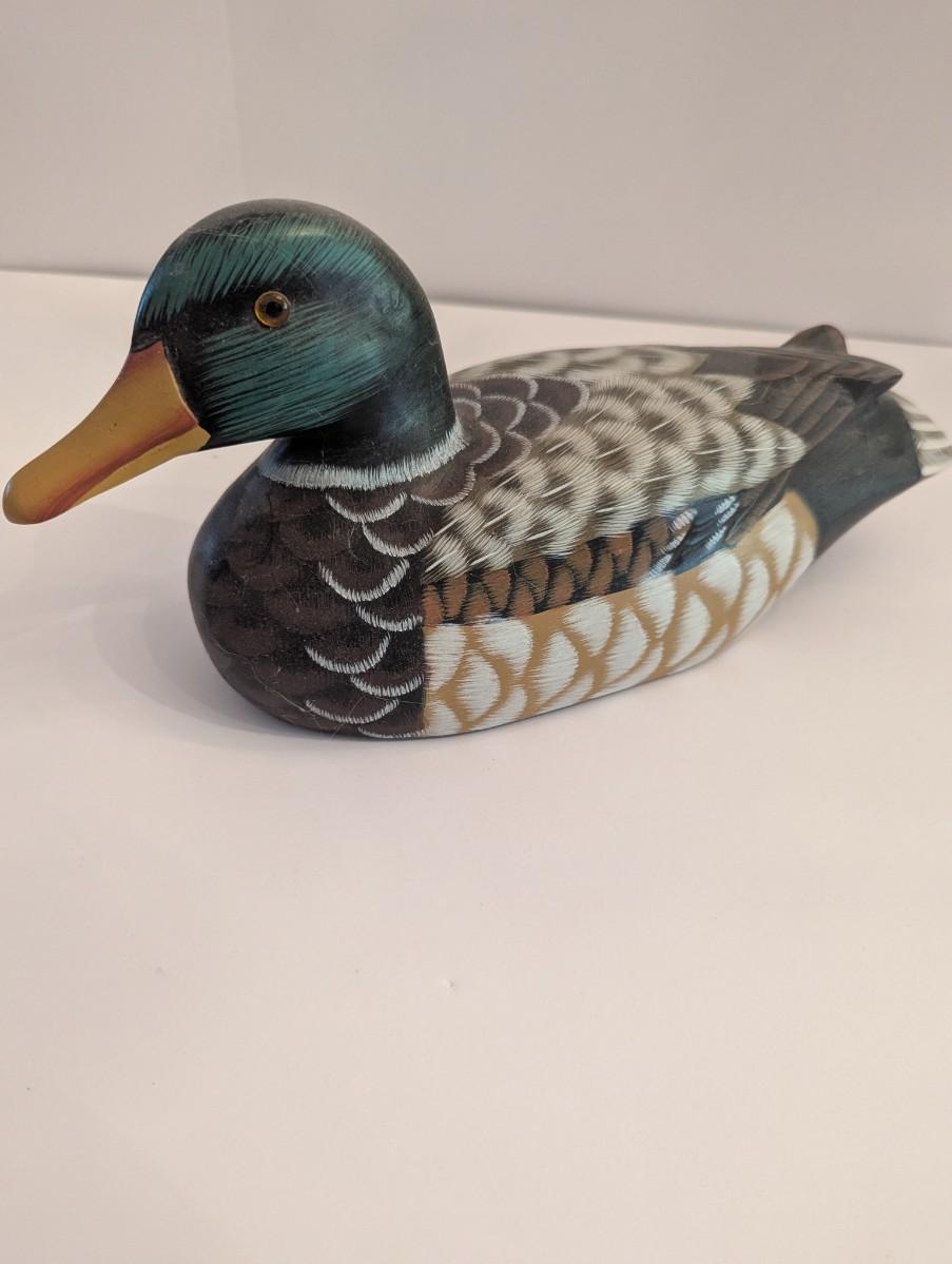 Hand Carved & Hand Painted Wood Duck Decoy Signed