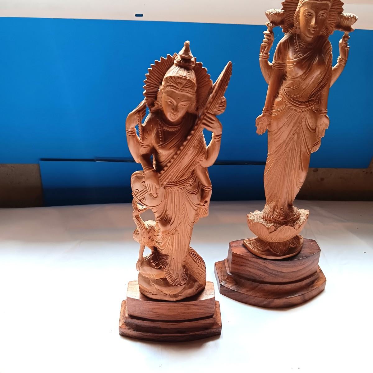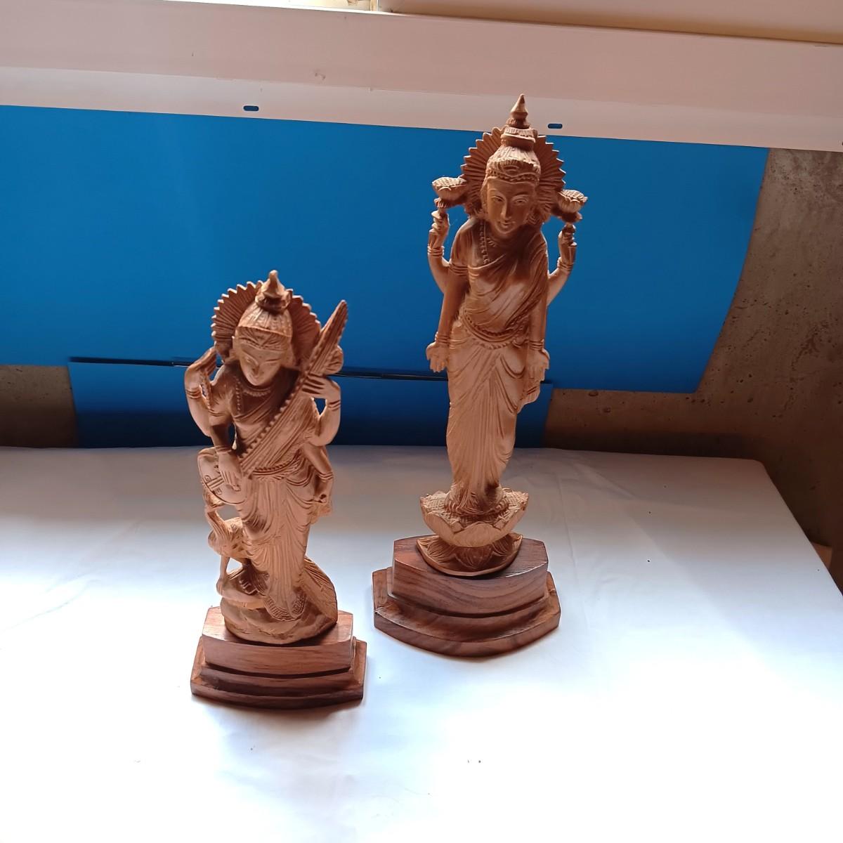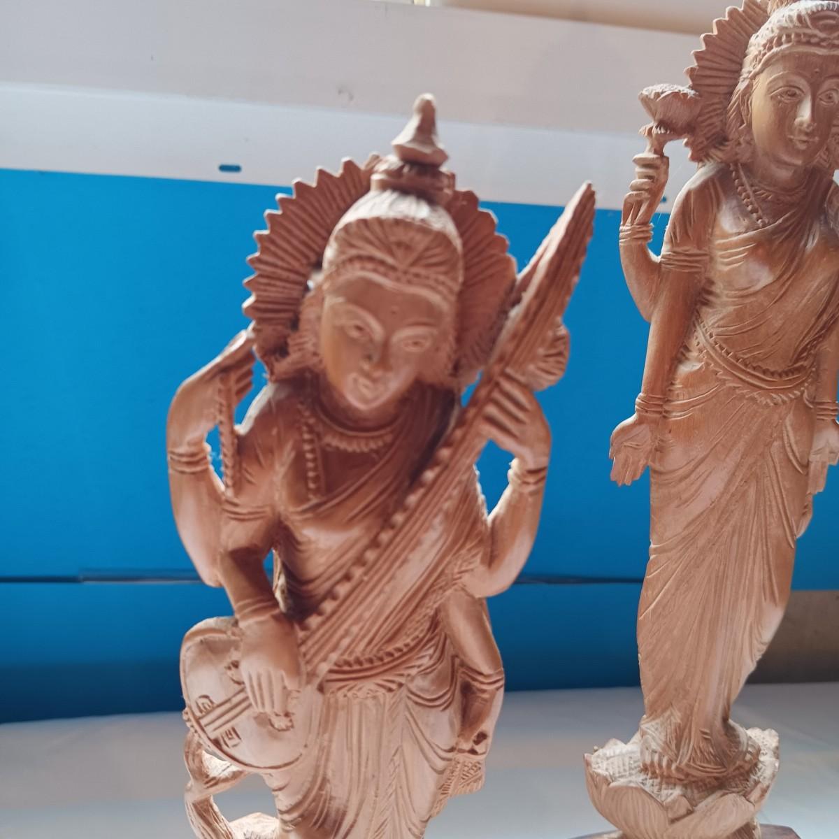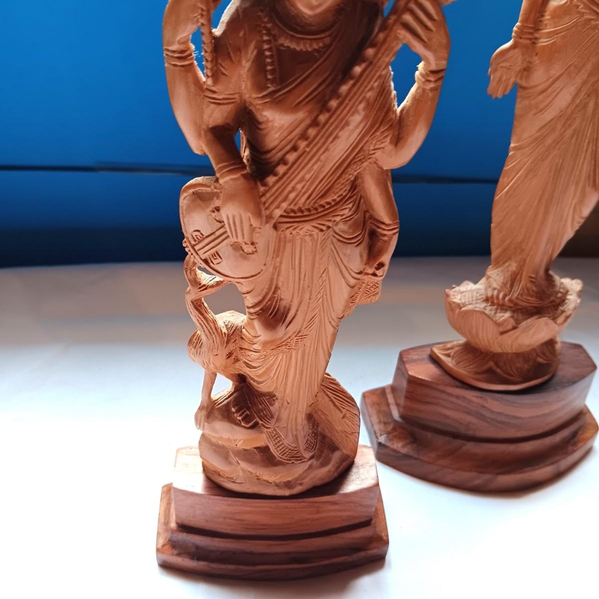HAND CARVED HINDU GODDESSES SARASWATI & LAKSHMI