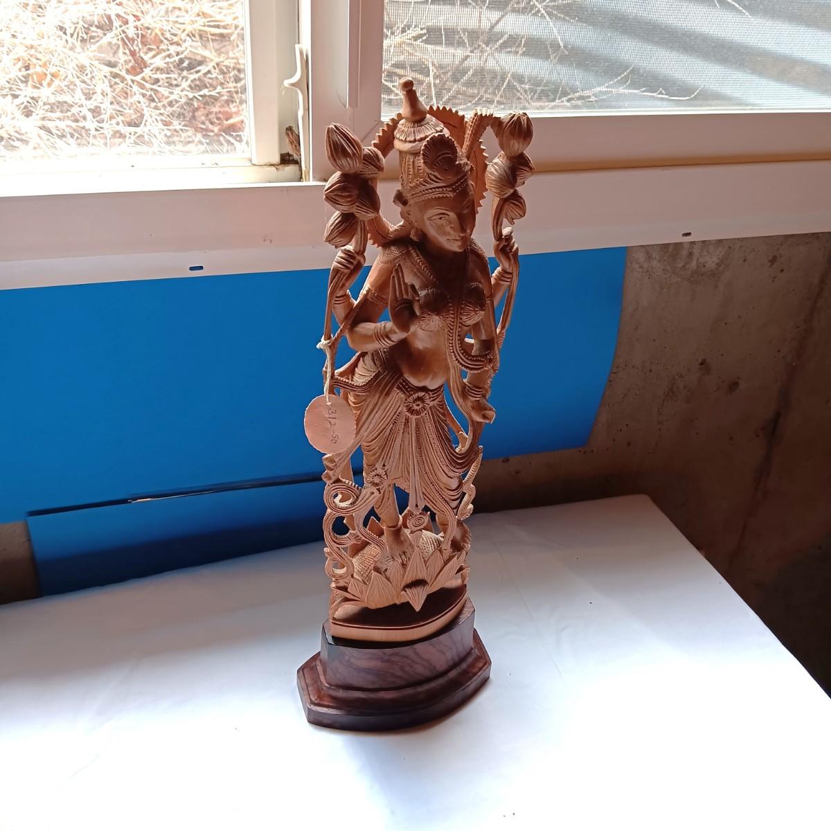 HAND CARVED HINDU LORD KRISHNA, REPRESENTING LOVE, COMPASSION AND WISDOM
