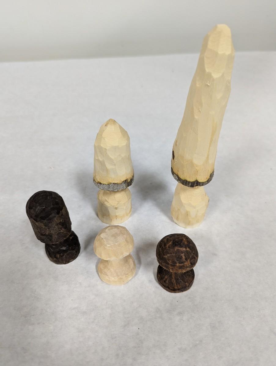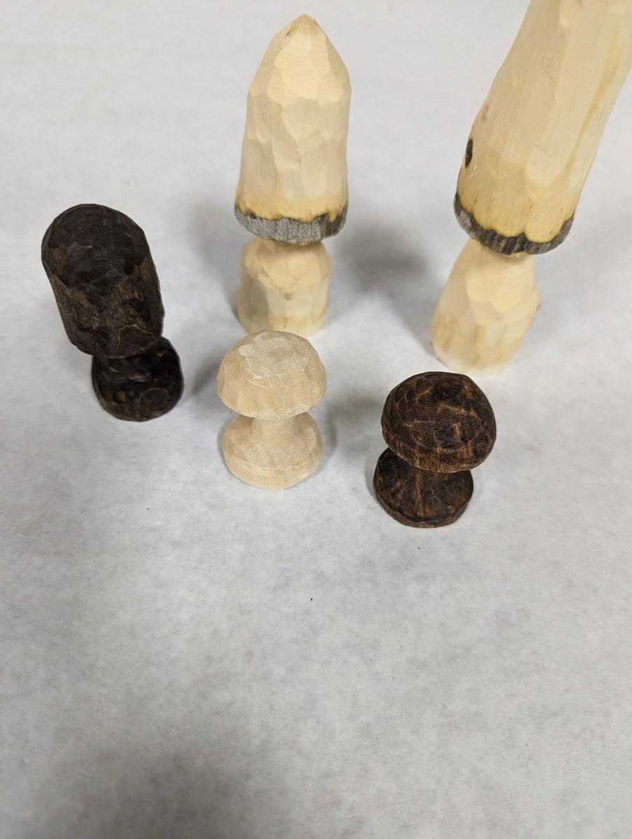 Wooden Mushrooms Hand Carved In Brasstown NC Signed RA