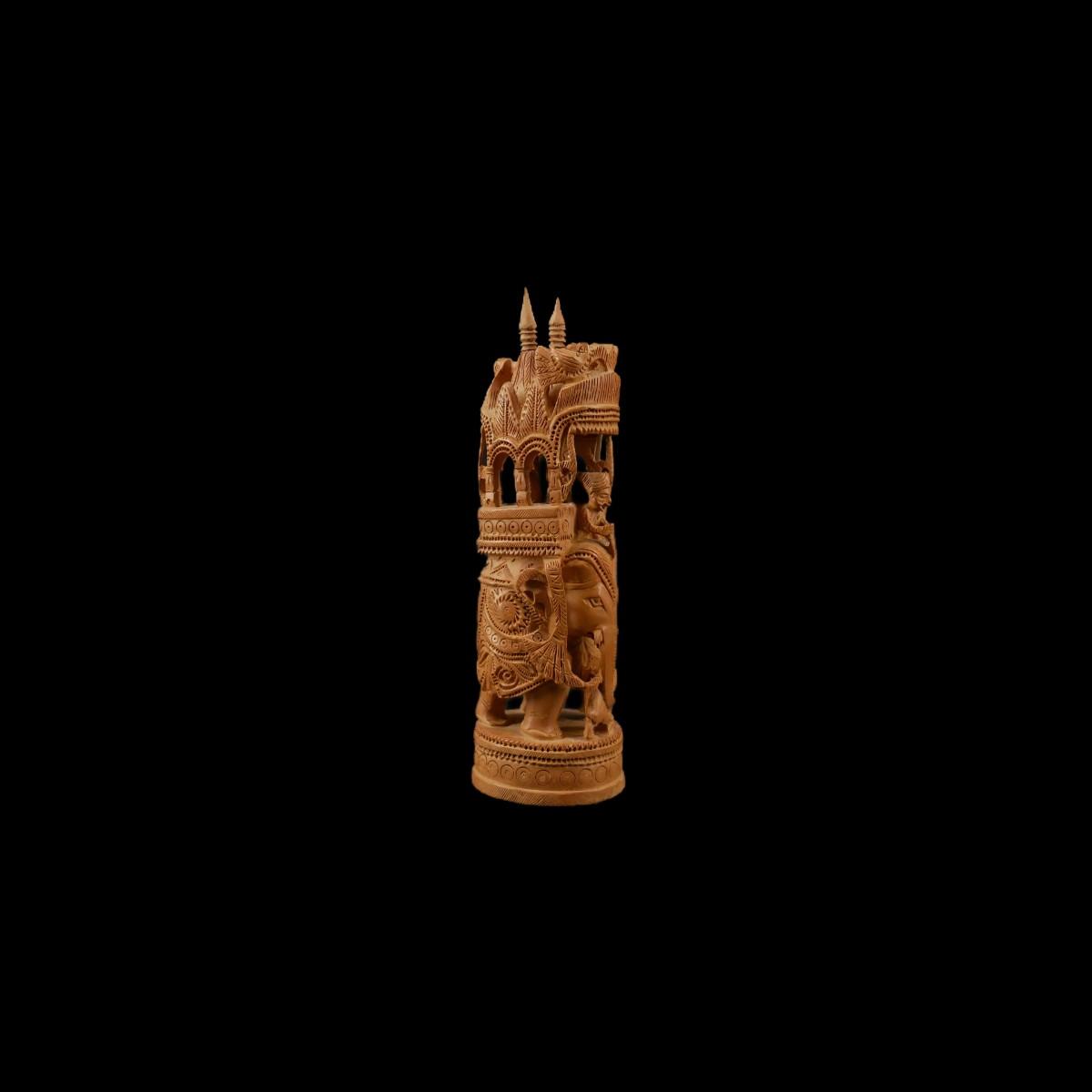 Hand-Carved Indian wooden round elephant figurine. Extremely detailed and beautifully ornate! Superb condition, no issues found. Measures L 2.5" x H 8" x W 2", weighs 9 oz. (D73)