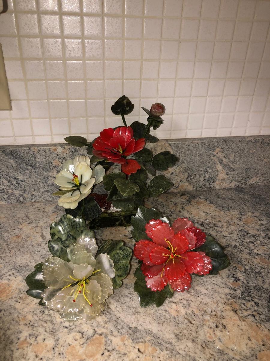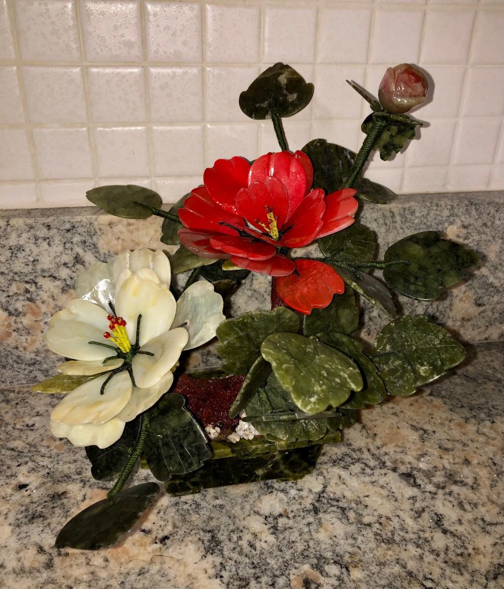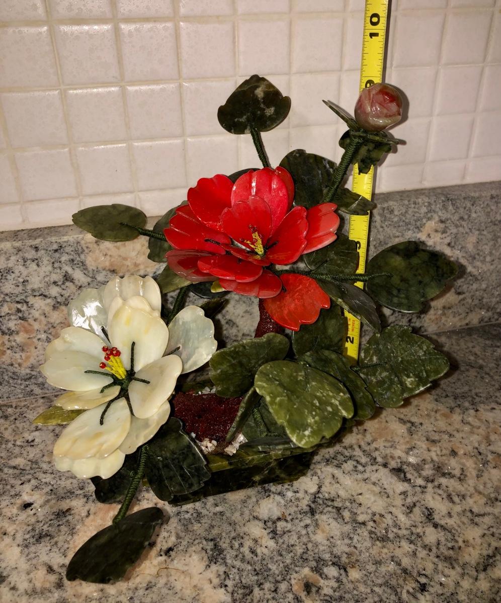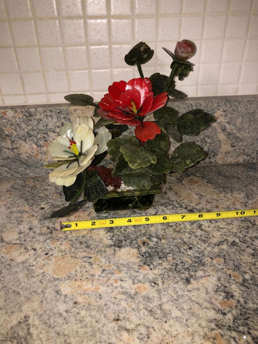 Gorgeous detail! One large potted bonsai tree and two flowers. All vintage and all hand carved