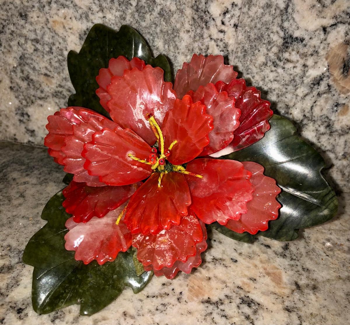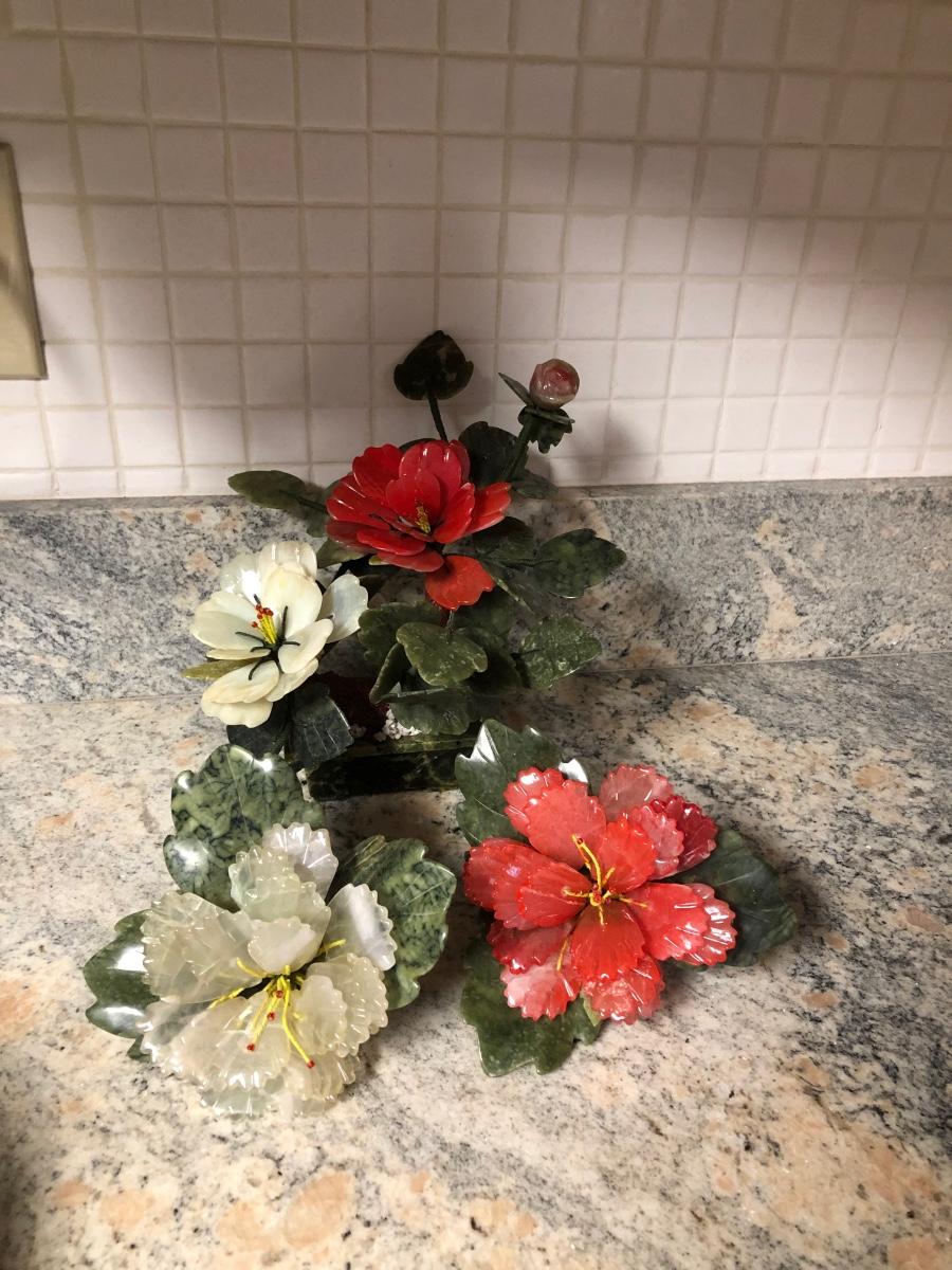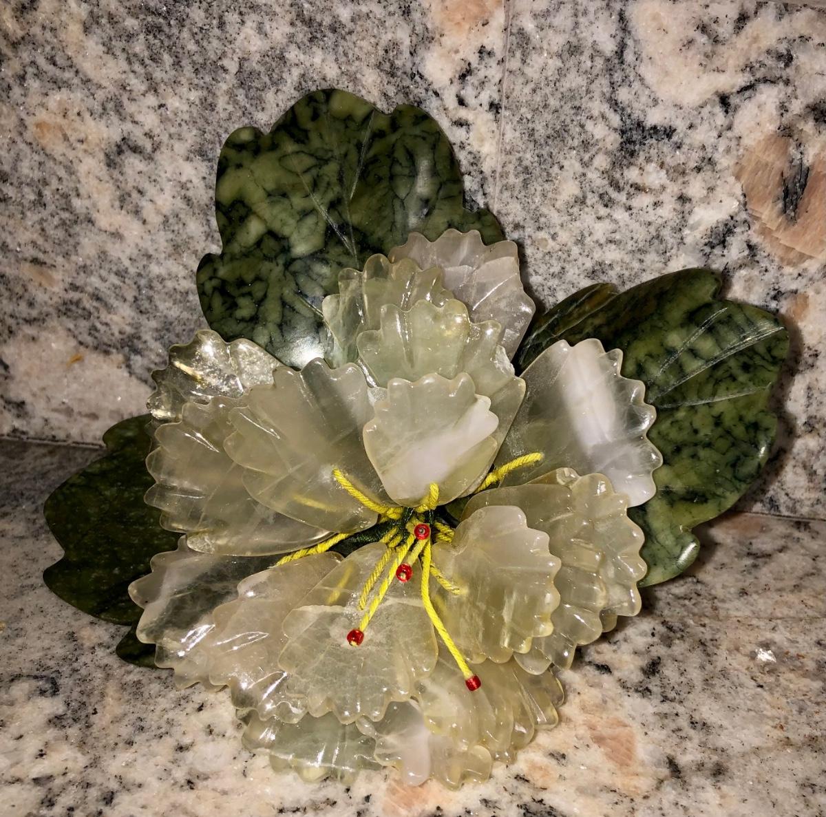 Gorgeous detail! One large potted bonsai tree and two flowers. All vintage and all hand carved
