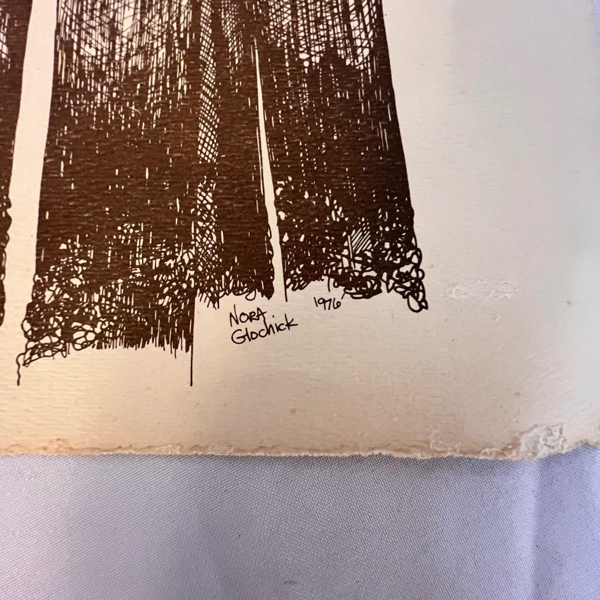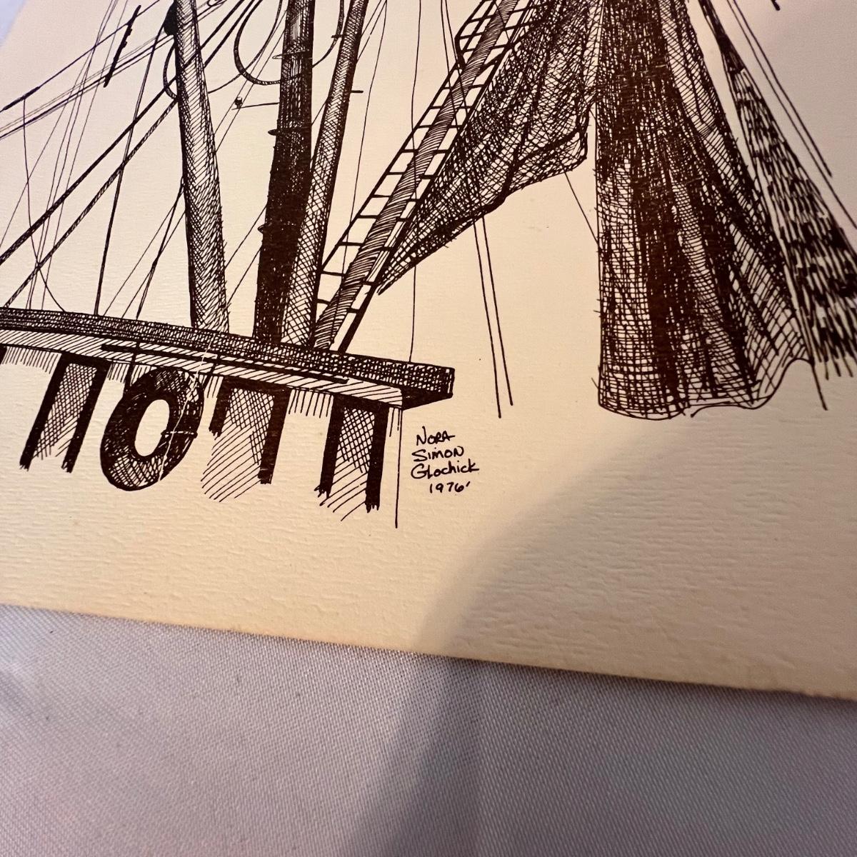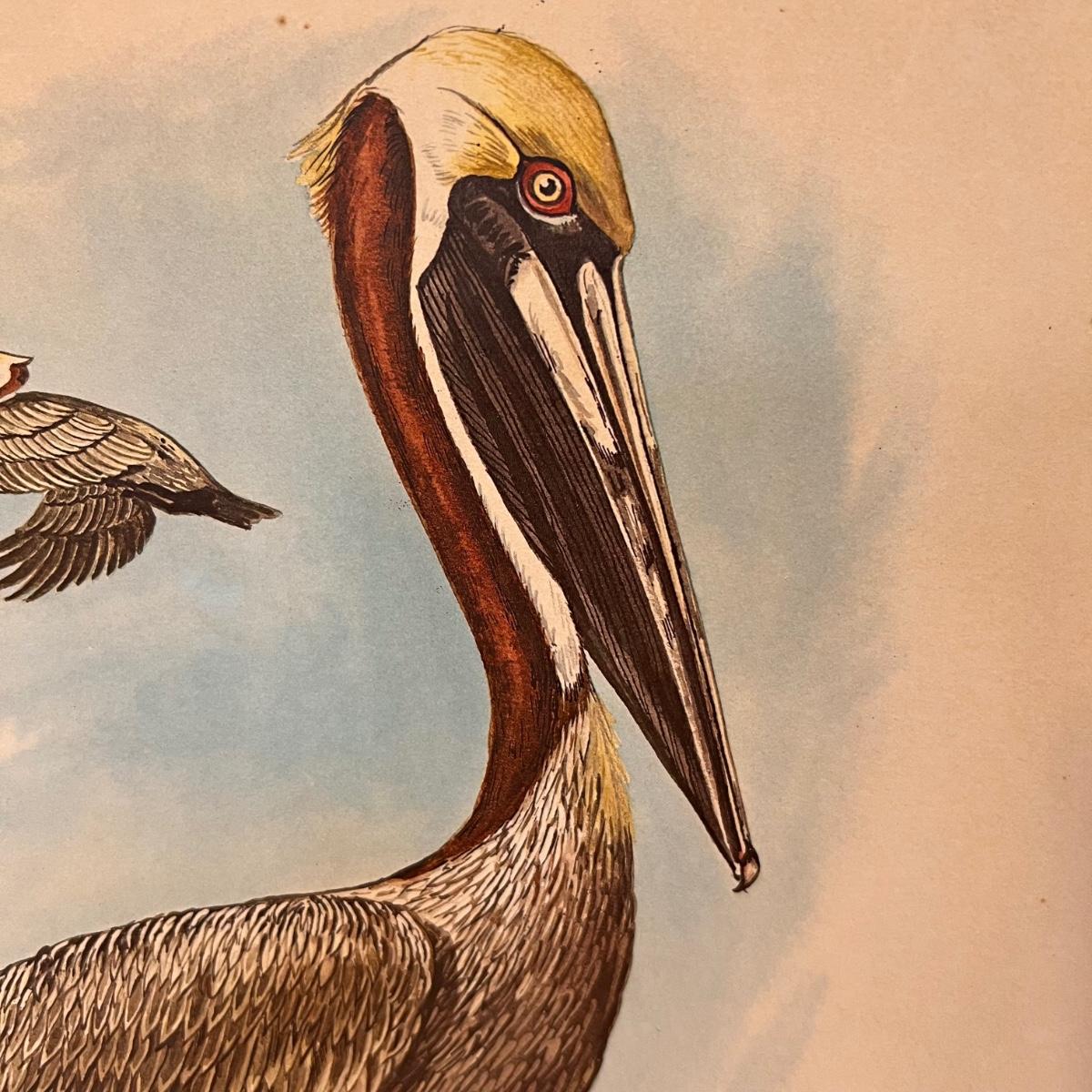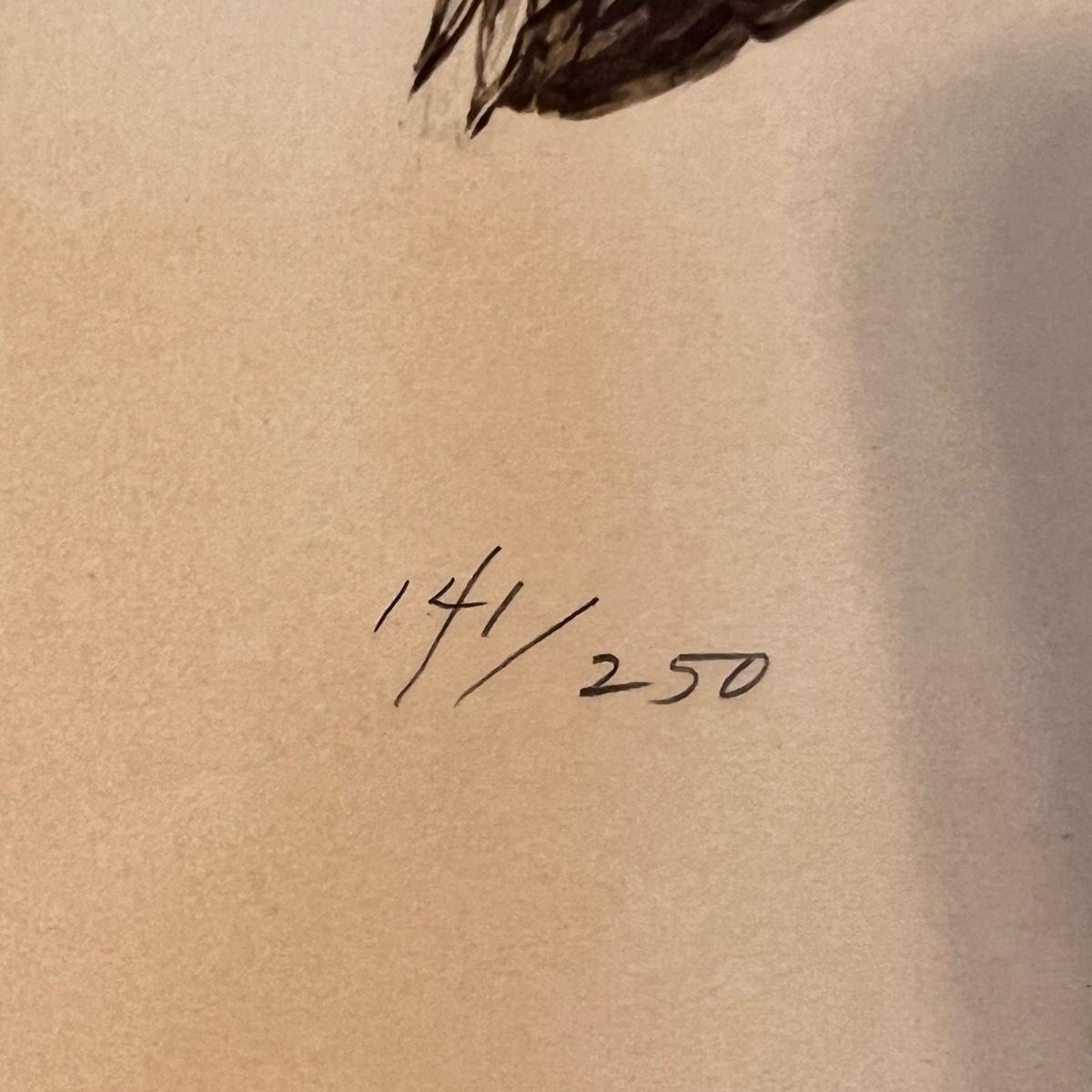 This mostly ocean themed lot includes a manatee statue that appears to be hand carved from a single piece of wood. Statue measures approximately 6” x 4” x 16”H. We have paired the statue with 10 prints. The print with color of a pelican on a tree stump is pencil signed and numbered 141/250; signature possibly reads Nadene Hammon. The rest of the prints are by Nora Simon Glochick, note that some have stains, see images.