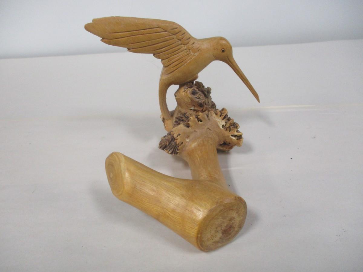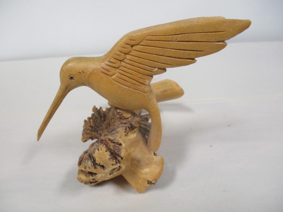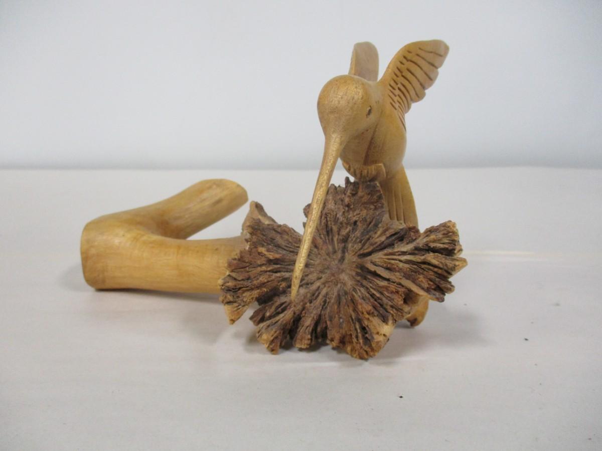 Hand Carved Parasite Wood Hummingbird Sculpture