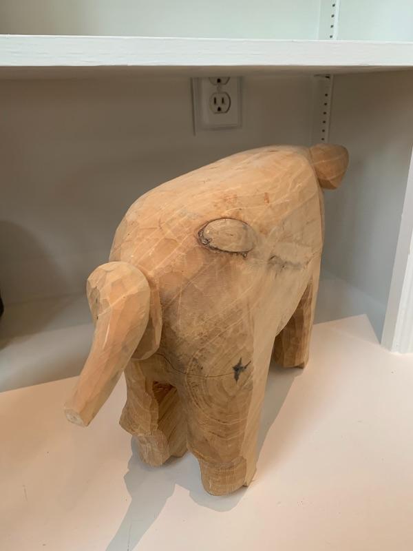 Hand Carved Pig in Good Condition. Height at Back is 9 inches and width from tip of Nose to end of tail is 17.5 inches. it is 5 inches across the back.