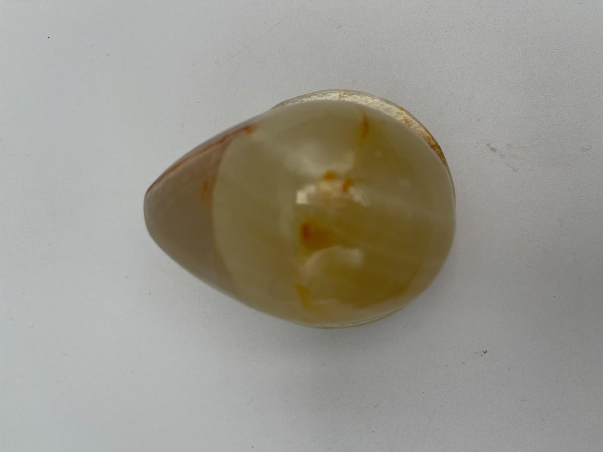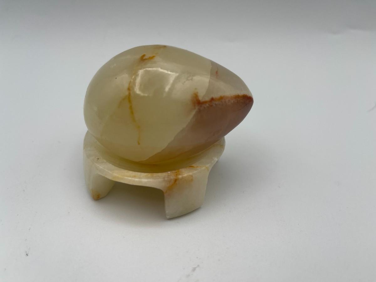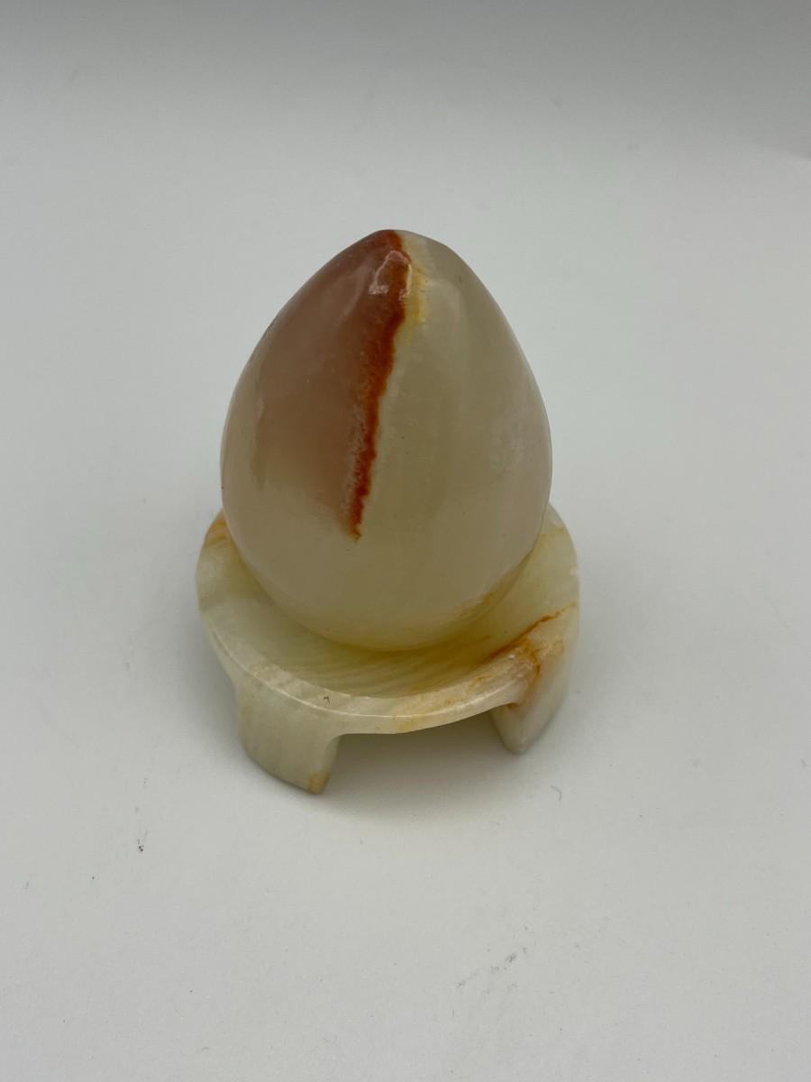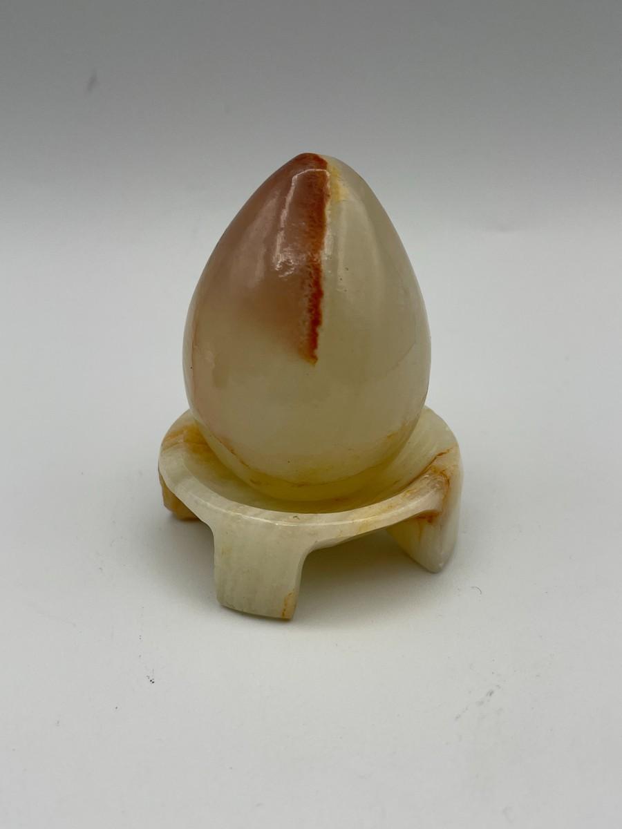 Hand Carved Quartz Egg with Matching Stand. Approx 2.5"H x 2.5"W. Excellent condition. # 675