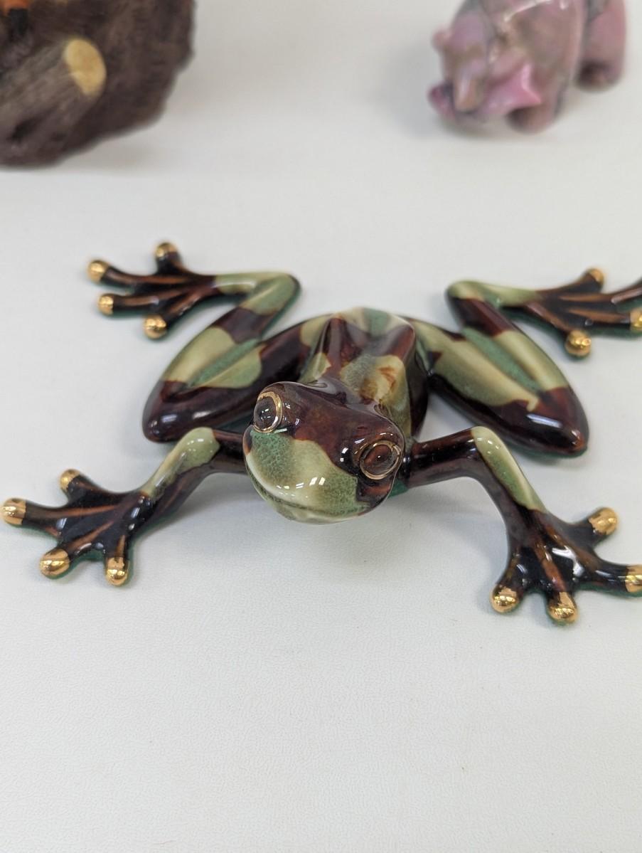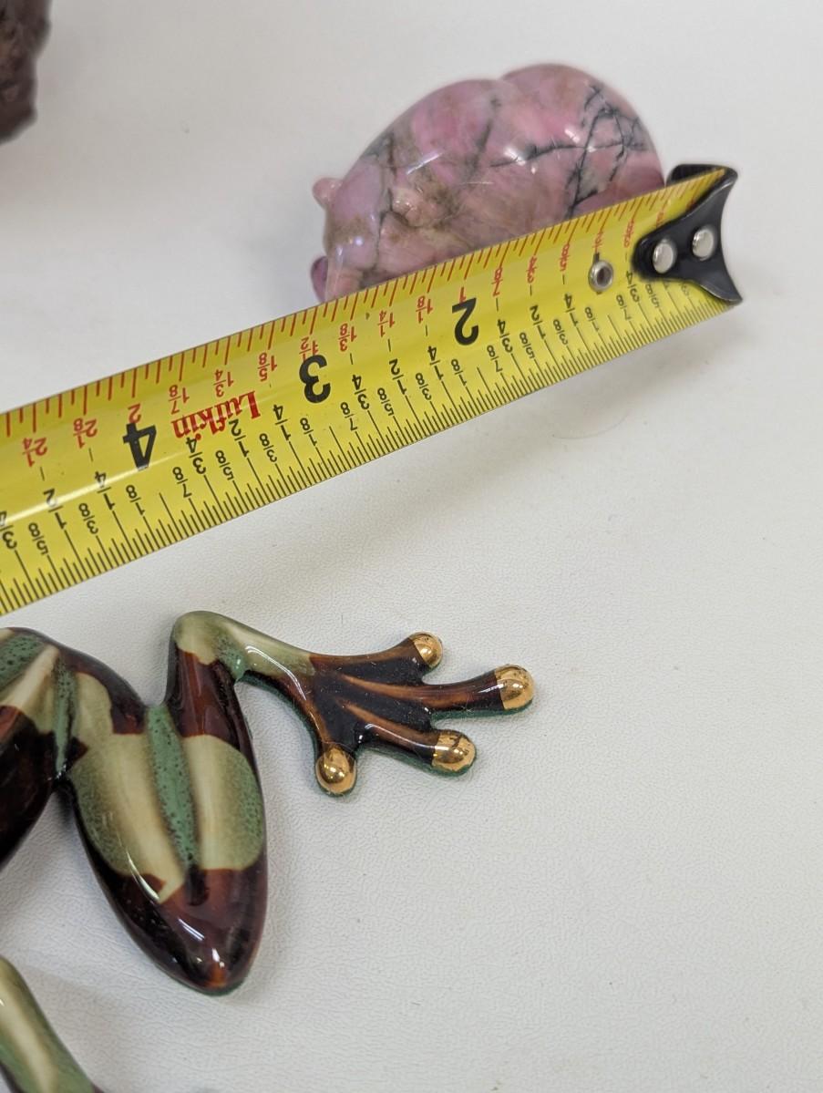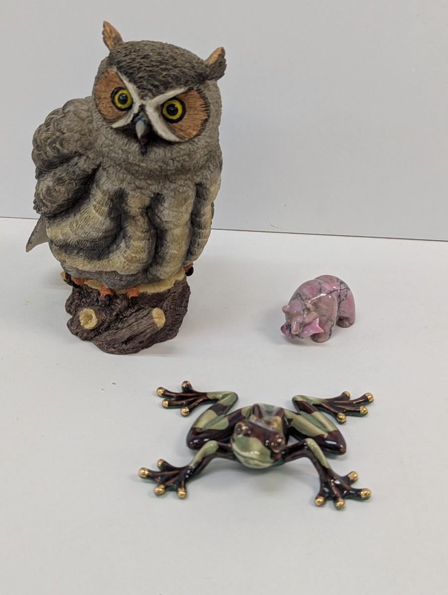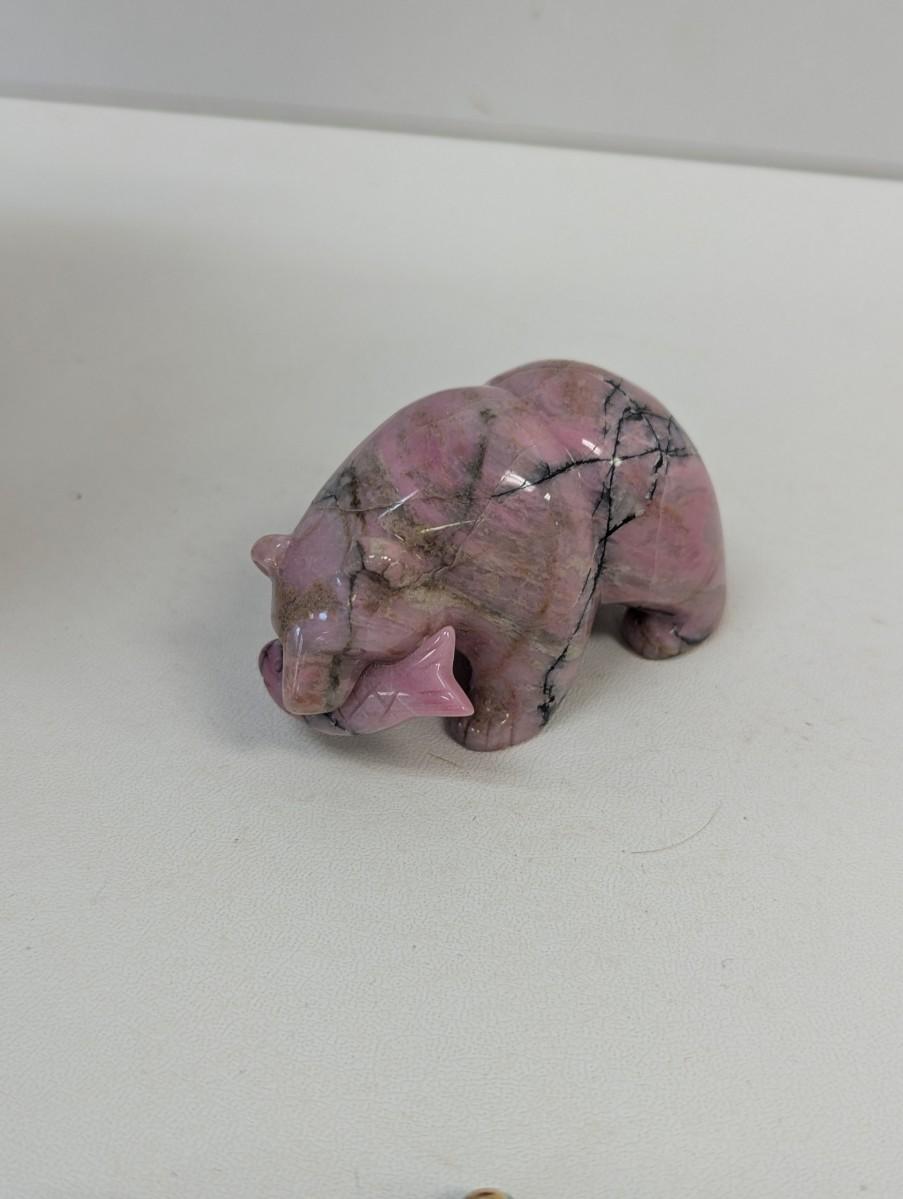 Hand Carved Rhodonite Bear Eating A Fish Resin Owl Whimsical Ceramic Tropical Frog