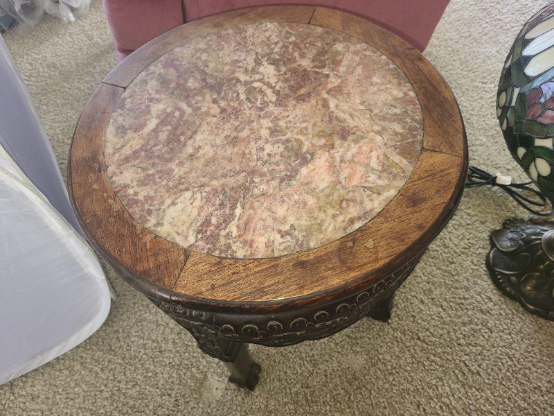 Circa 1920. Likely import but no maker. Had been repaired on bottom. Marble top not damaged