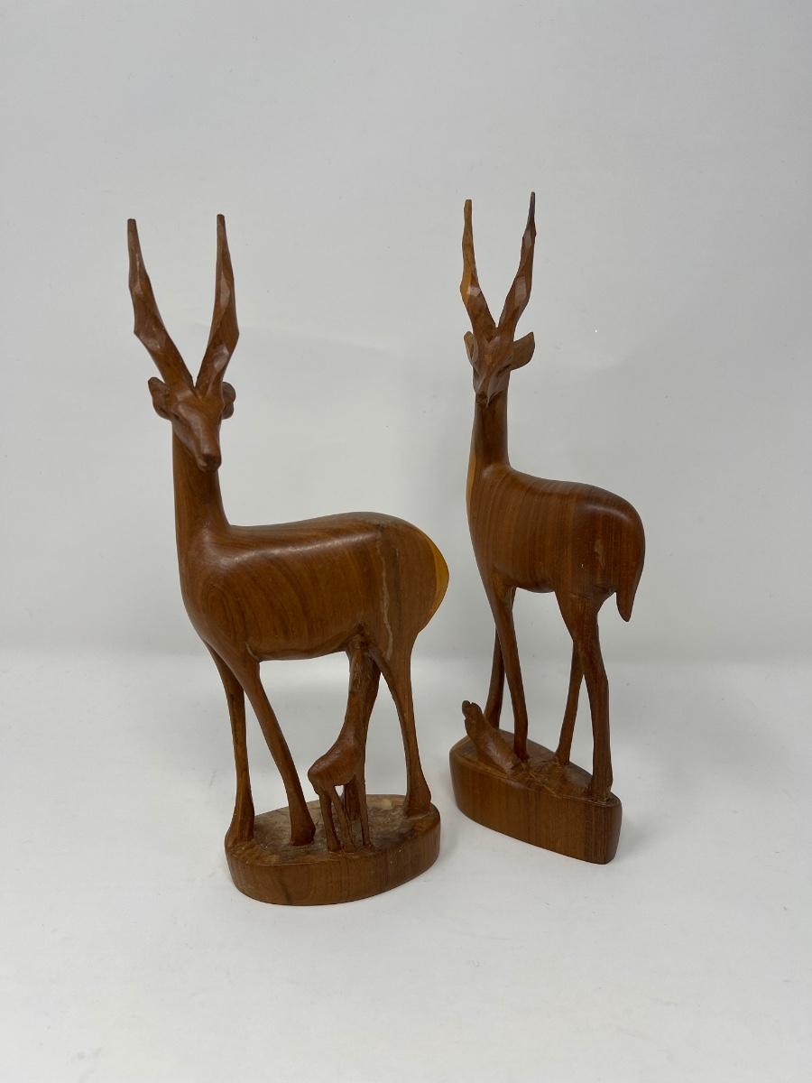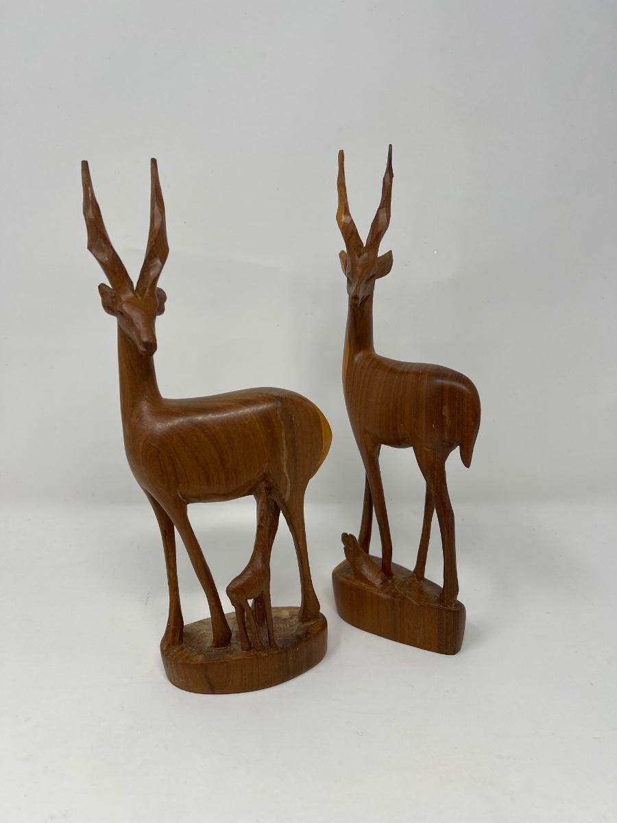 Hand Carved Teak Wood Deer Figures -Kenya