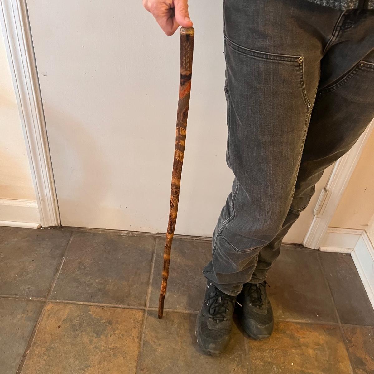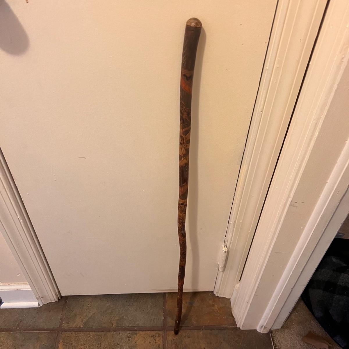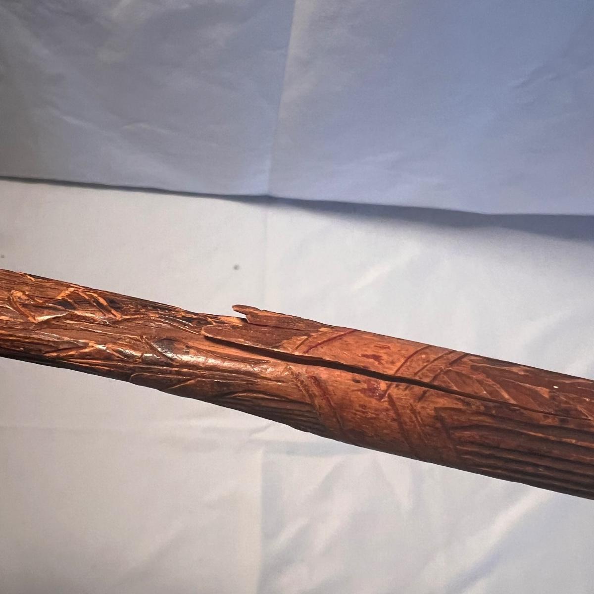 Photos do not do justice to this intricately carved stick that has such detail! It has a small chip, see pics. It appears to be hand carved and painted in some areas.