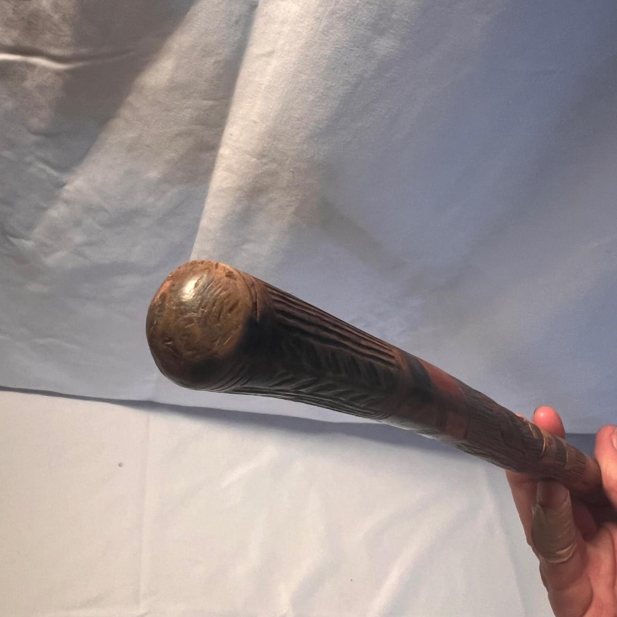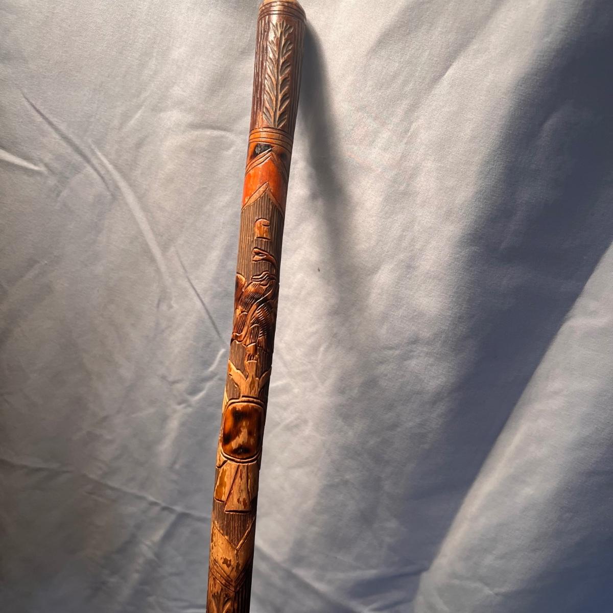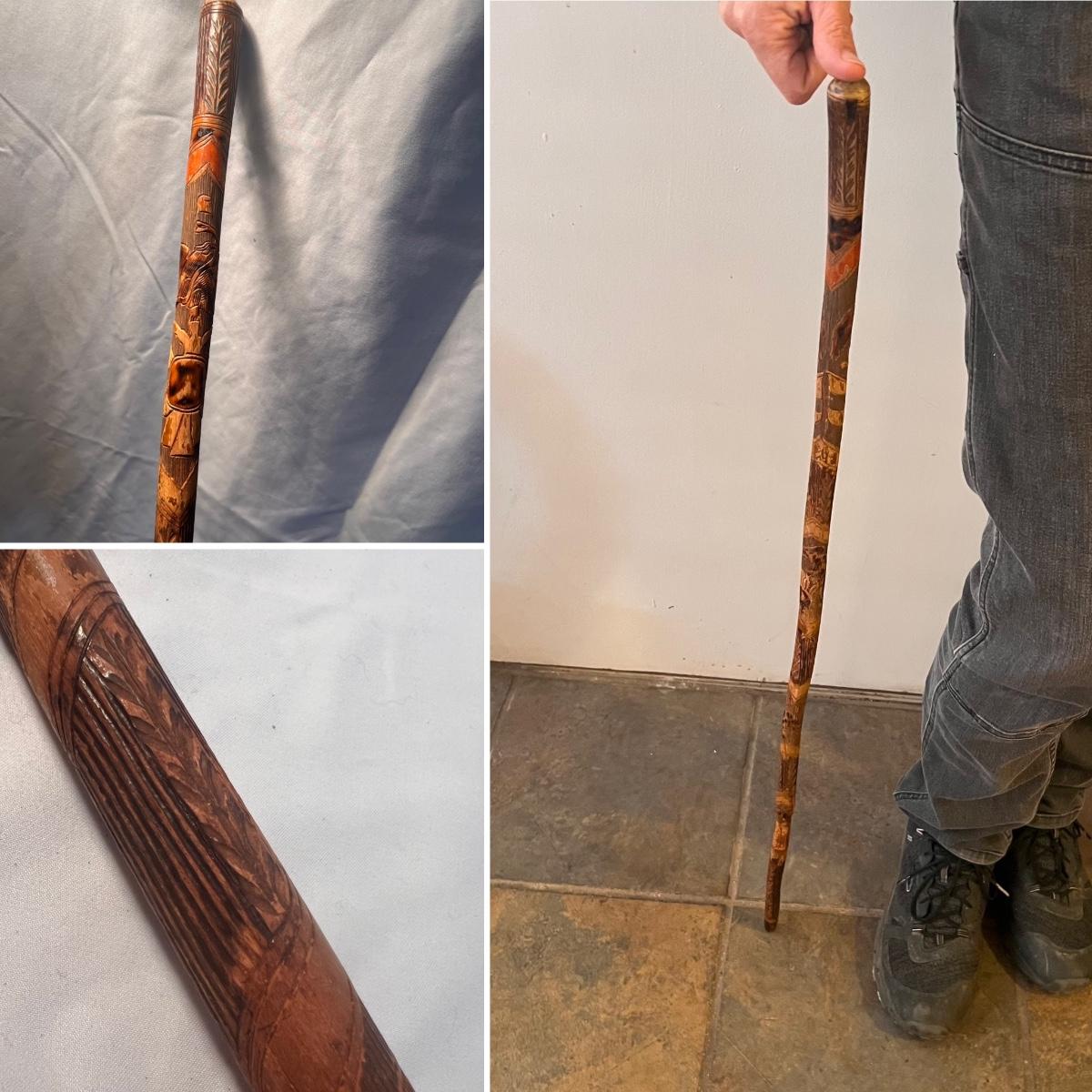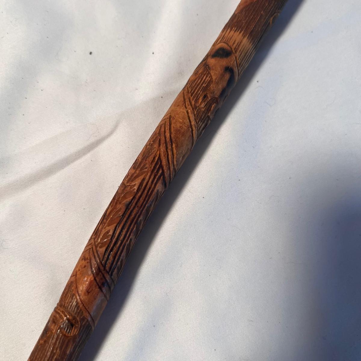 Photos do not do justice to this intricately carved stick that has such detail! It has a small chip, see pics. It appears to be hand carved and painted in some areas.