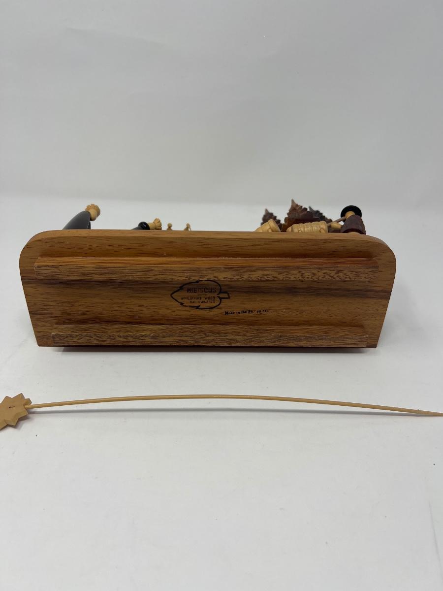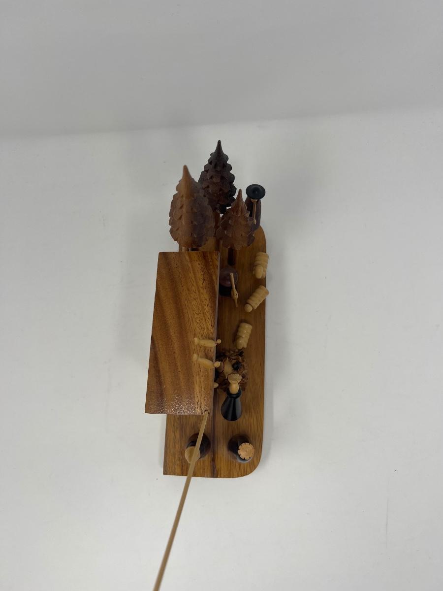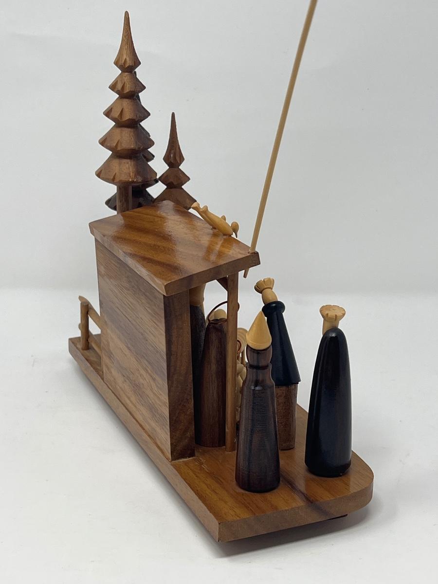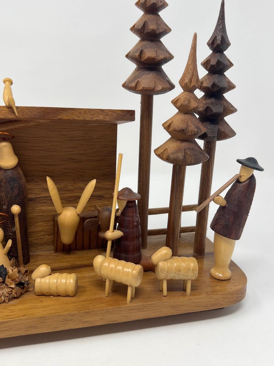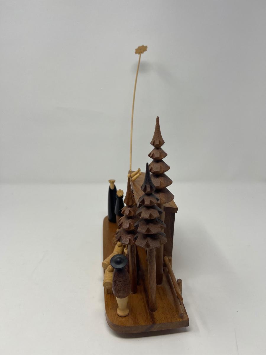 Delightful wood carved manger scene marked on bottom. Star, shepherd staff are removable.