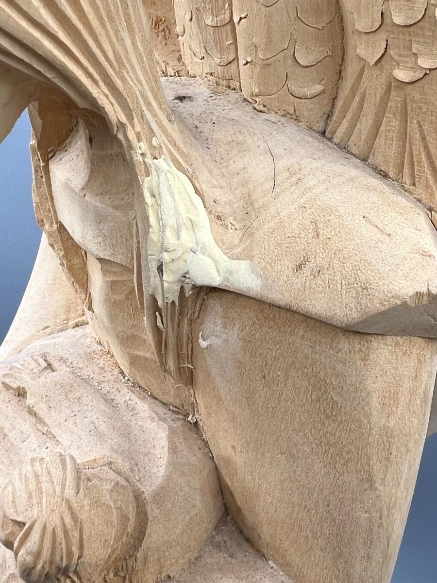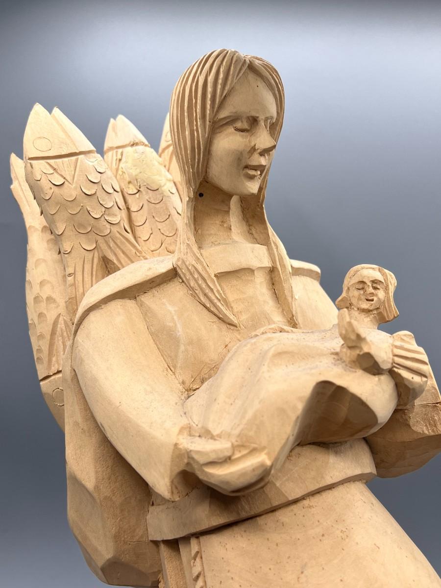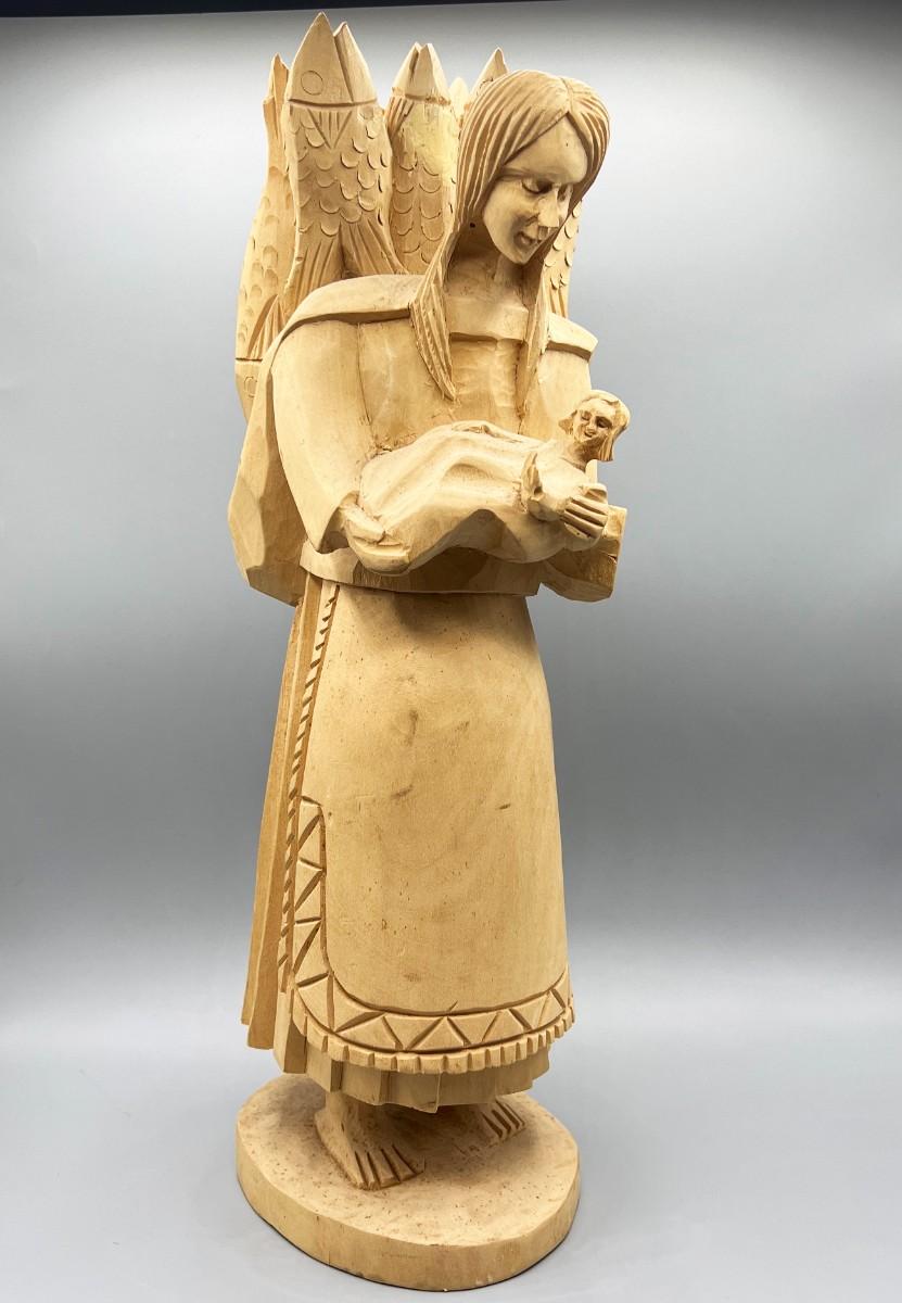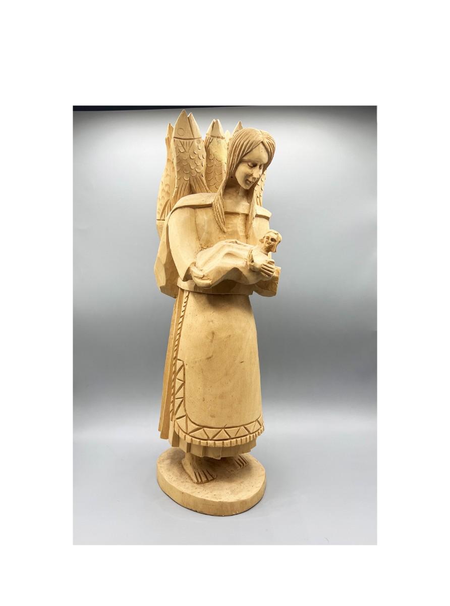 Hand Carved Wood Figurine of Indigenous Woman with Child and Fish, there is some light wear, but there is no significant damage to the wooden figurine and is in good displayable condition. Check pictures for more details and for sizing.