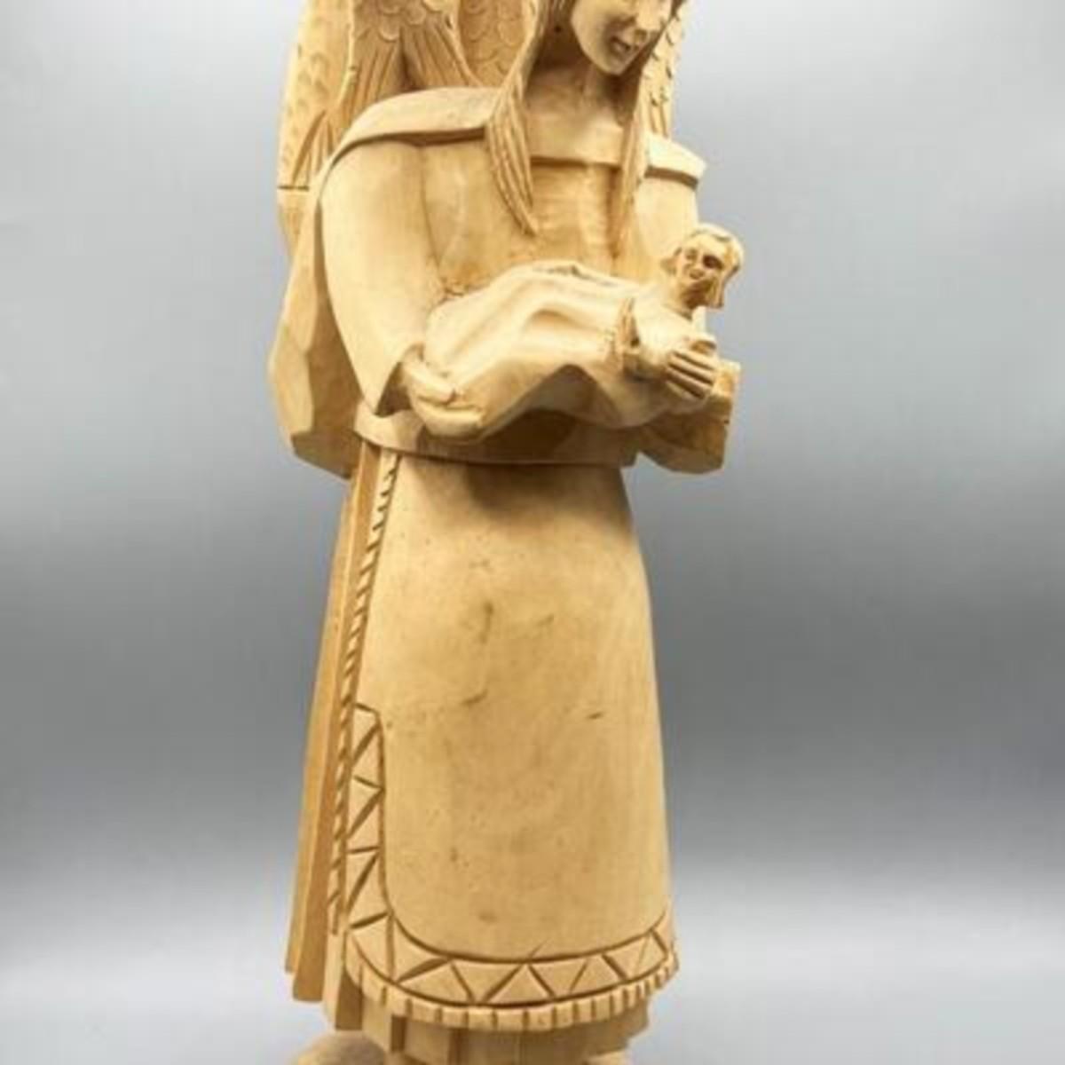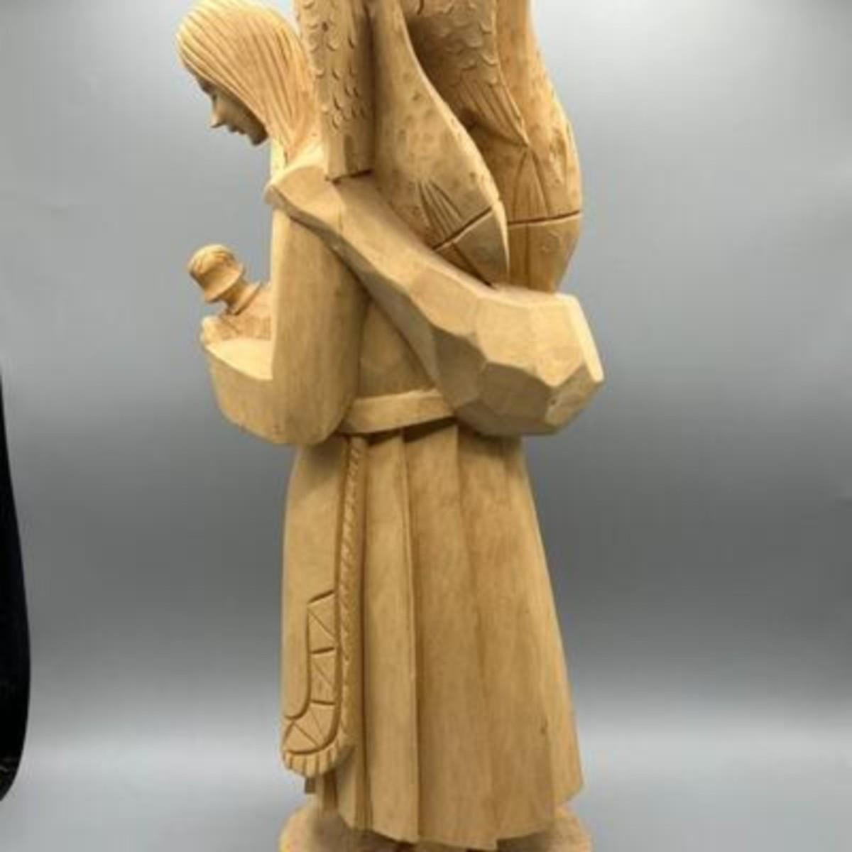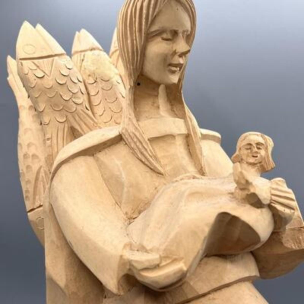 Hand Carved Wood Figurine of Indigenous Woman with Child and Fish, there is some light wear, but there is no significant damage to the wooden figurine and is in good displayable condition. Check pictures for more details and for sizing.