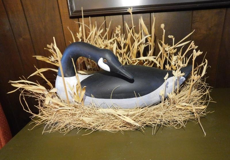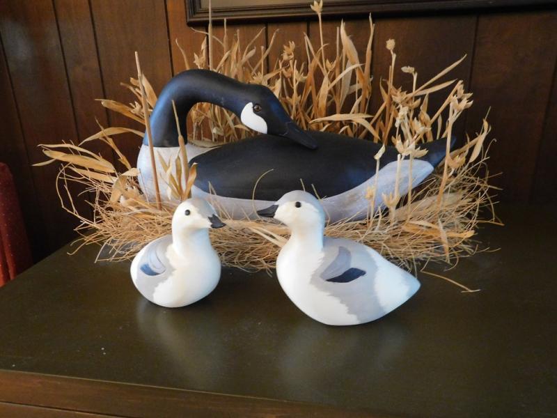 Hand Carved Wood Goose and Goslings by CAP in good condition. Extremely nice item.