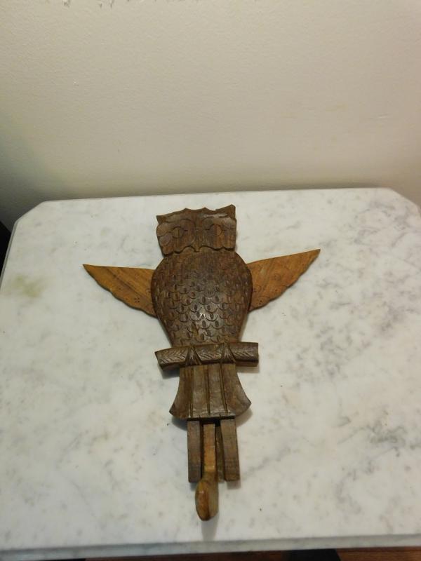 Hand Carved Wood Owl with Moving Wings