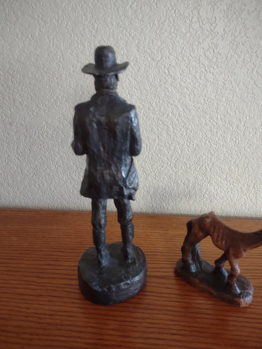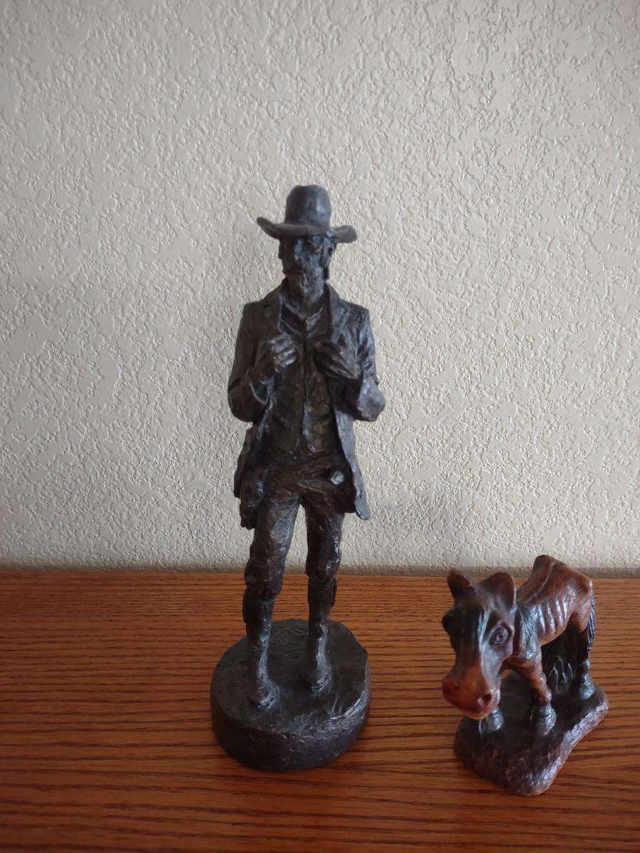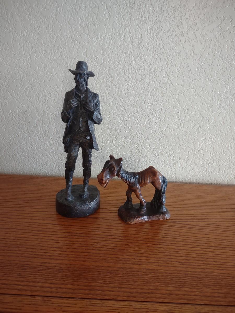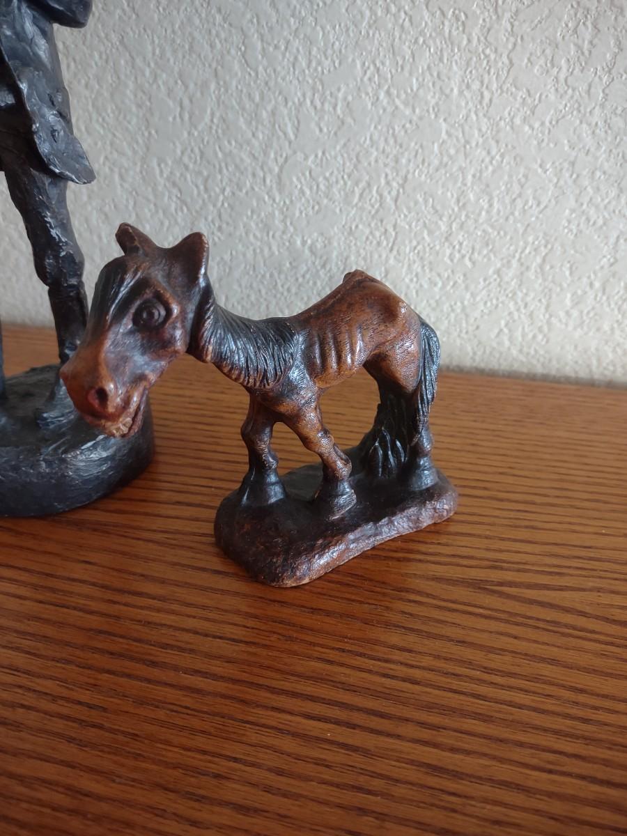 HAND CARVED WOODEN COWBOY AND HORSE