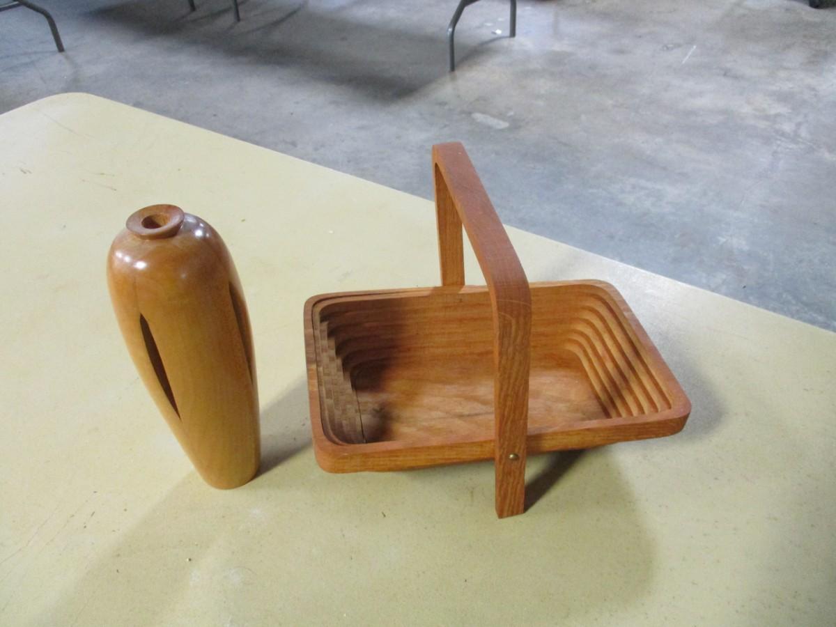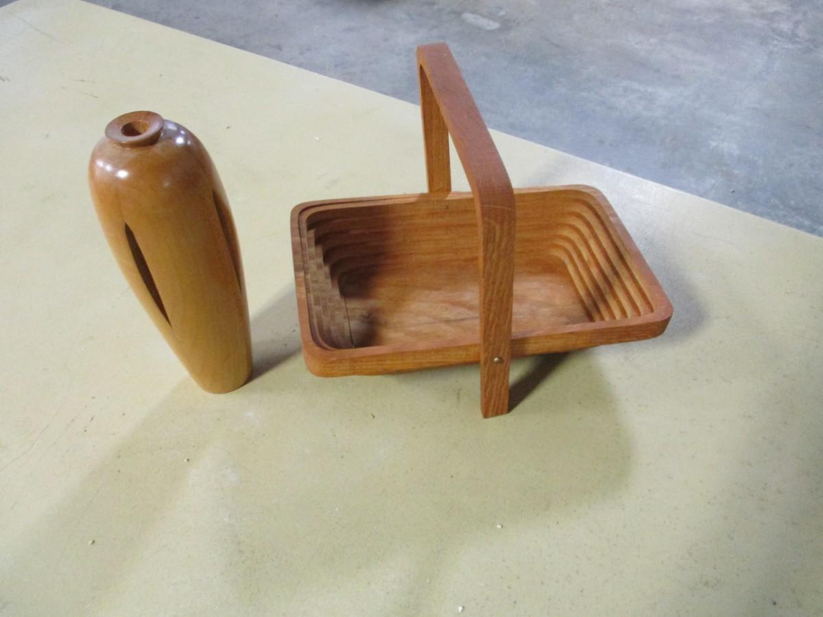 Hand Carved Wooden Vase & Pear Tree Baskets Collapsible