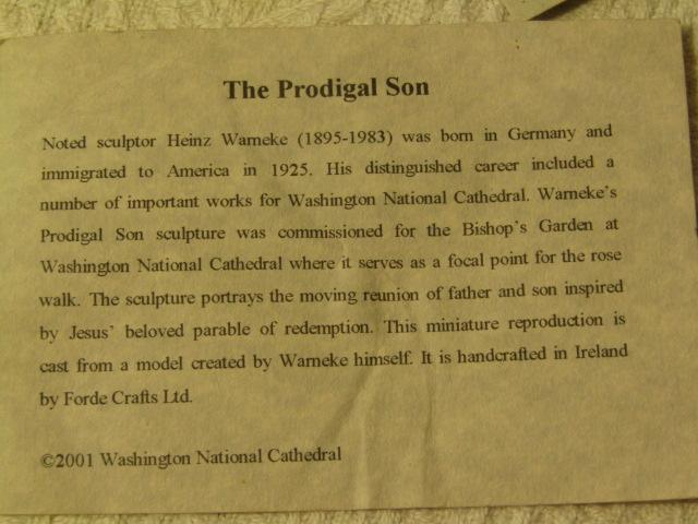 Hand Cast Irish Stone by Kieran Forde Reproduction of Heinz Werneke's 'The Prodigal Son'