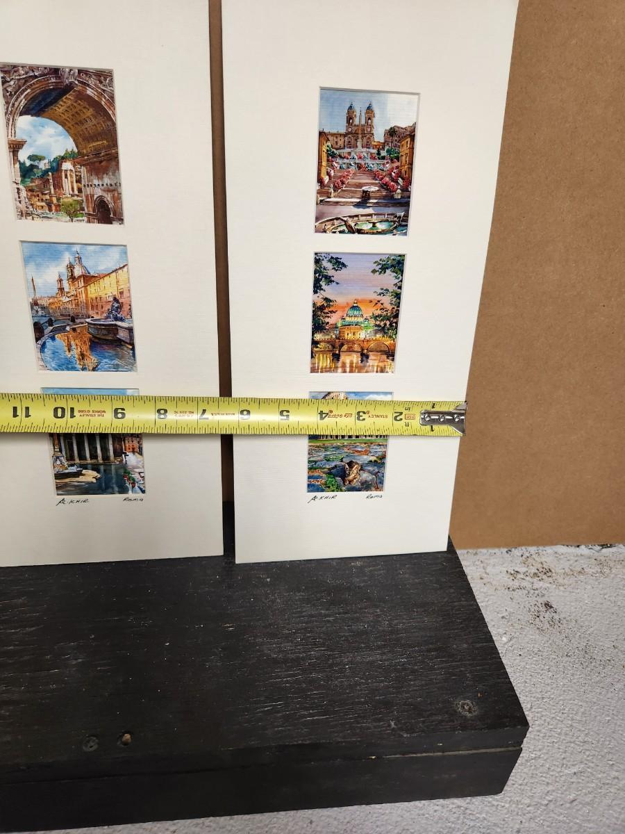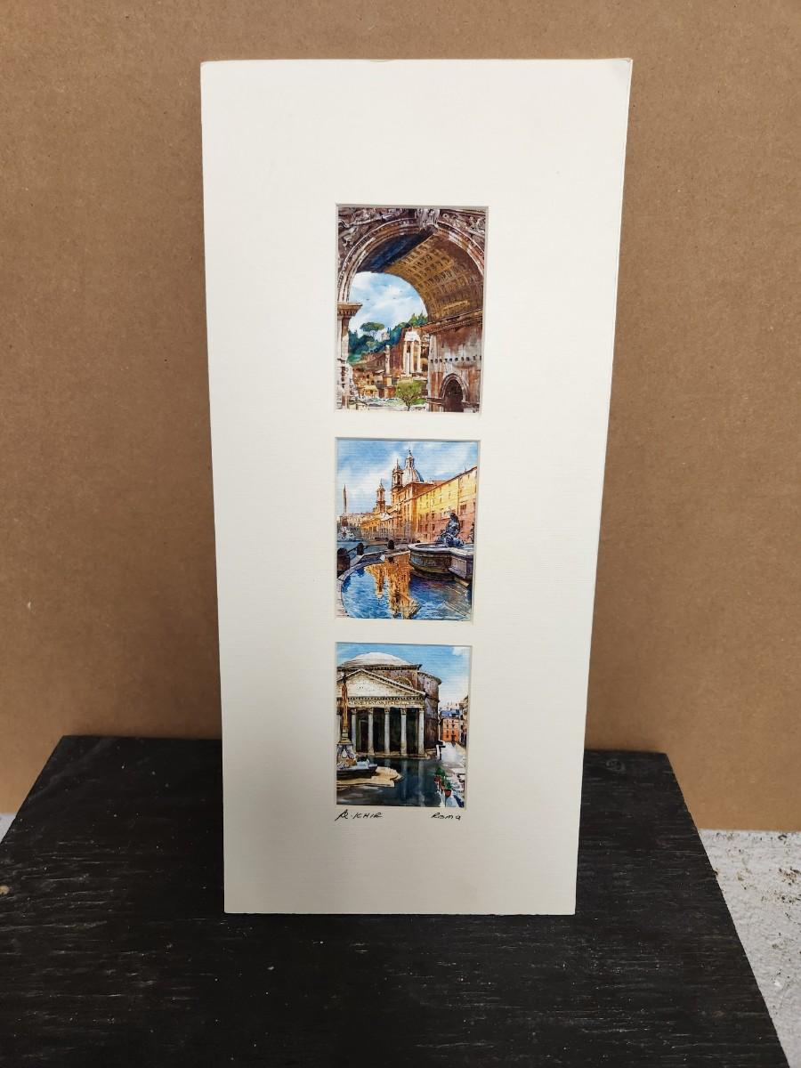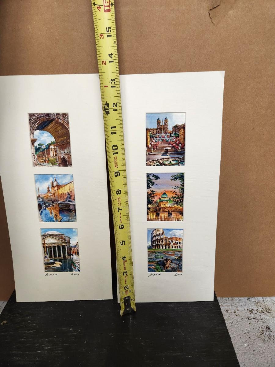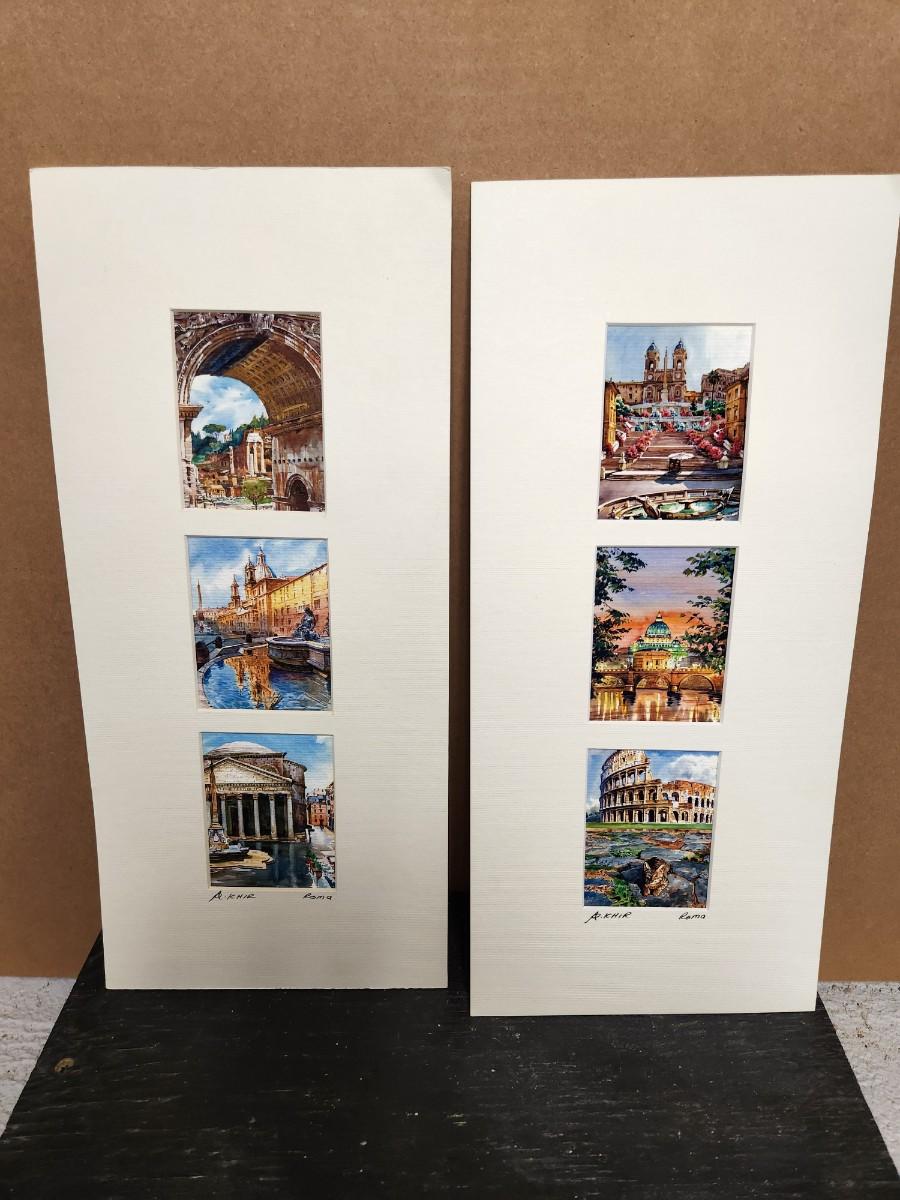 6 small hand created canvases depicting scenes of Rome. Each matte carried 3 images and can be framed however you see fit.