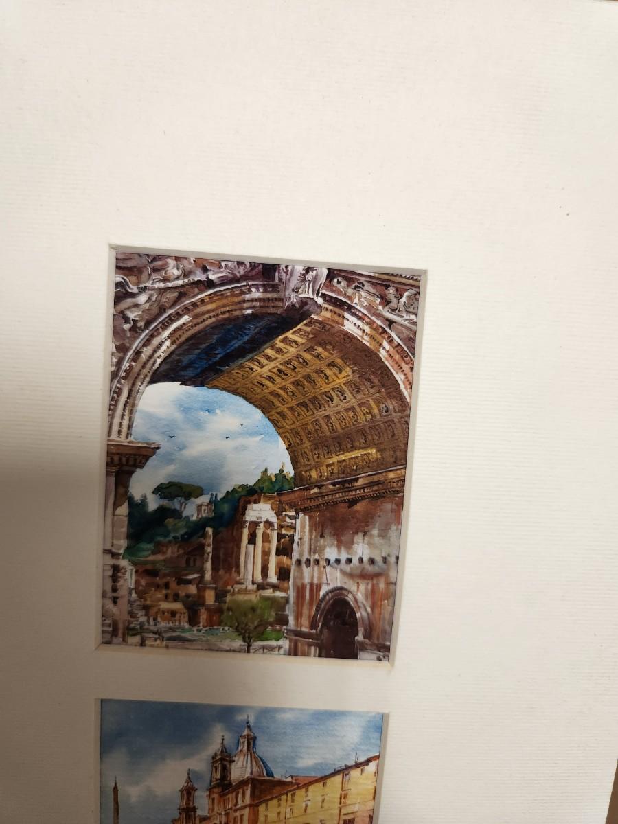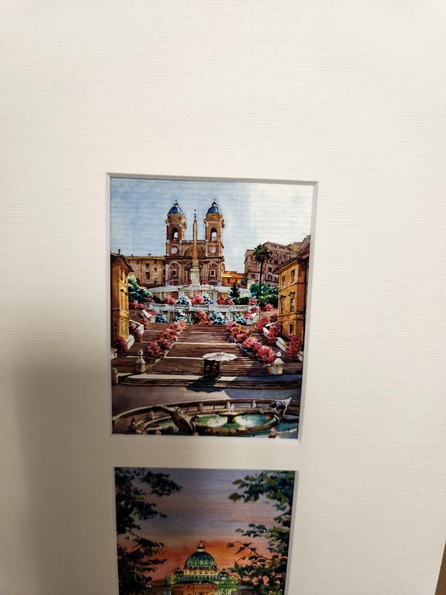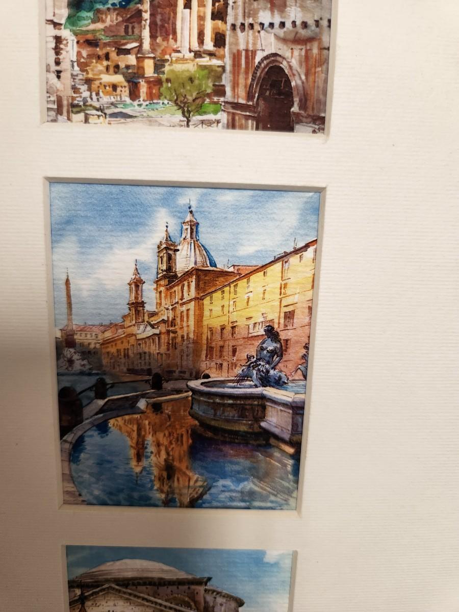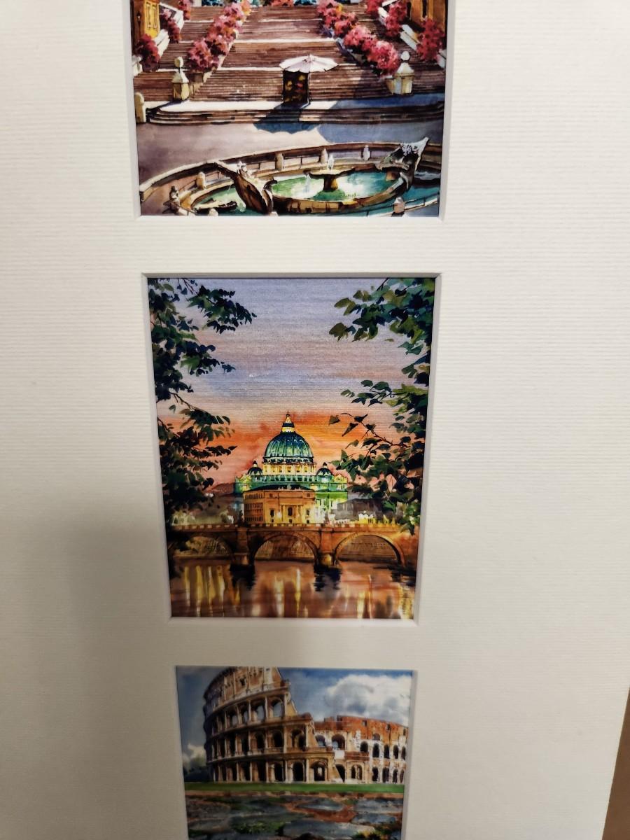 6 small hand created canvases depicting scenes of Rome. Each matte carried 3 images and can be framed however you see fit.