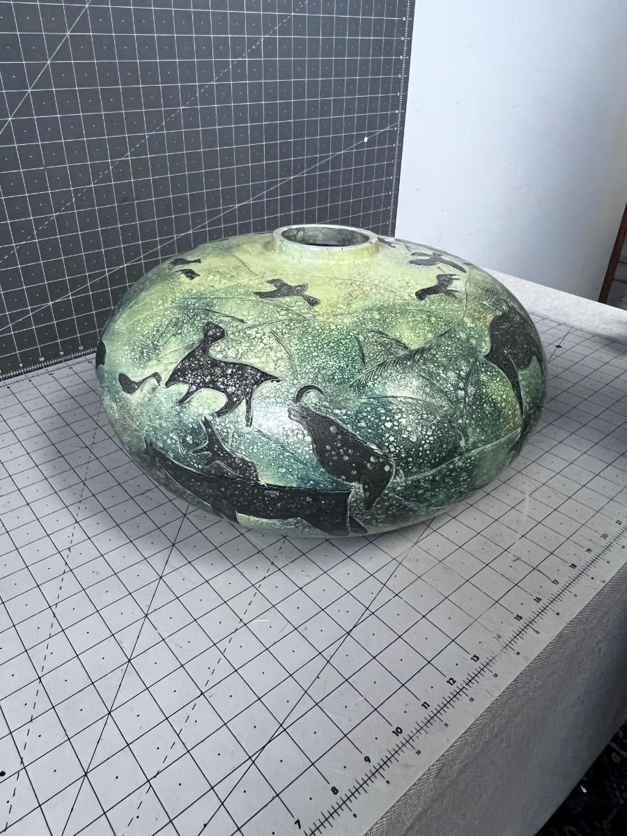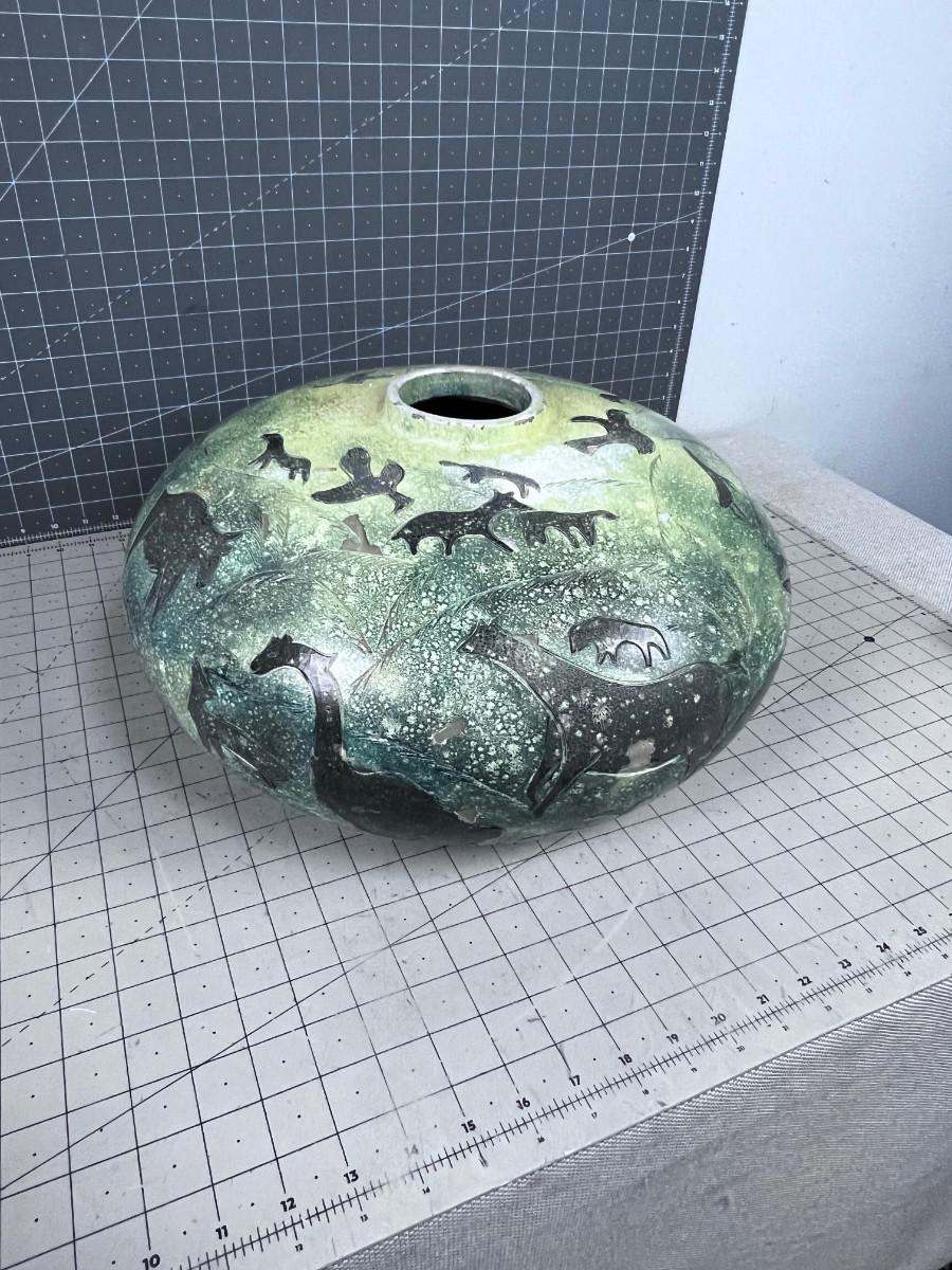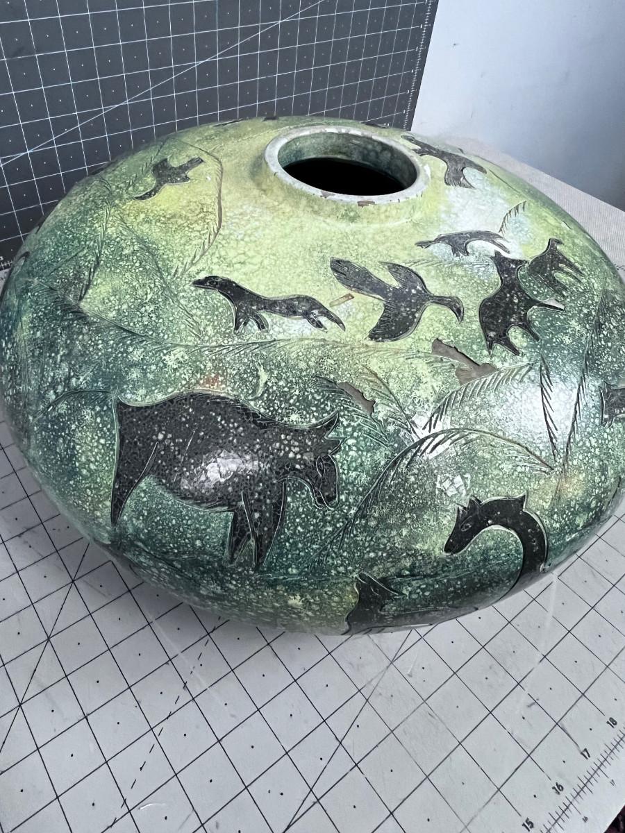 16" Wide By 8" Tall ,Glaze is coming off. NEAT!!! INTERESTING!