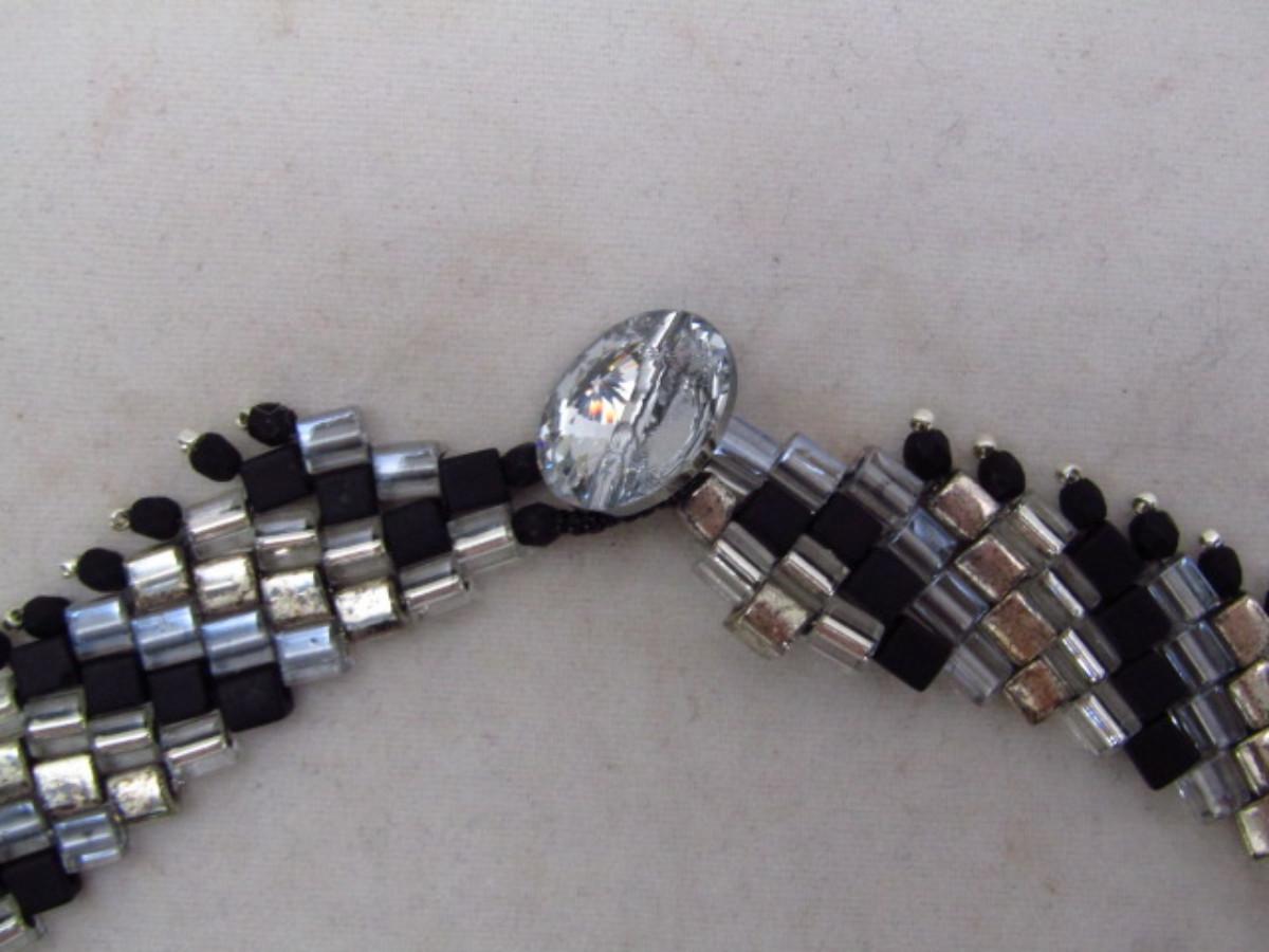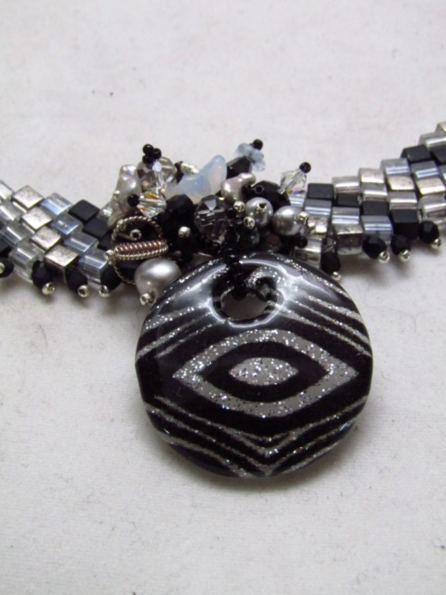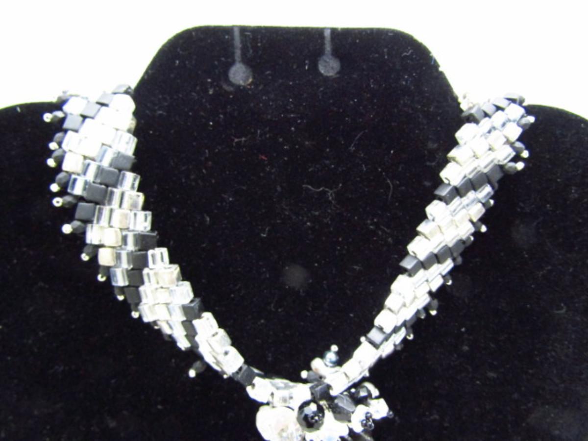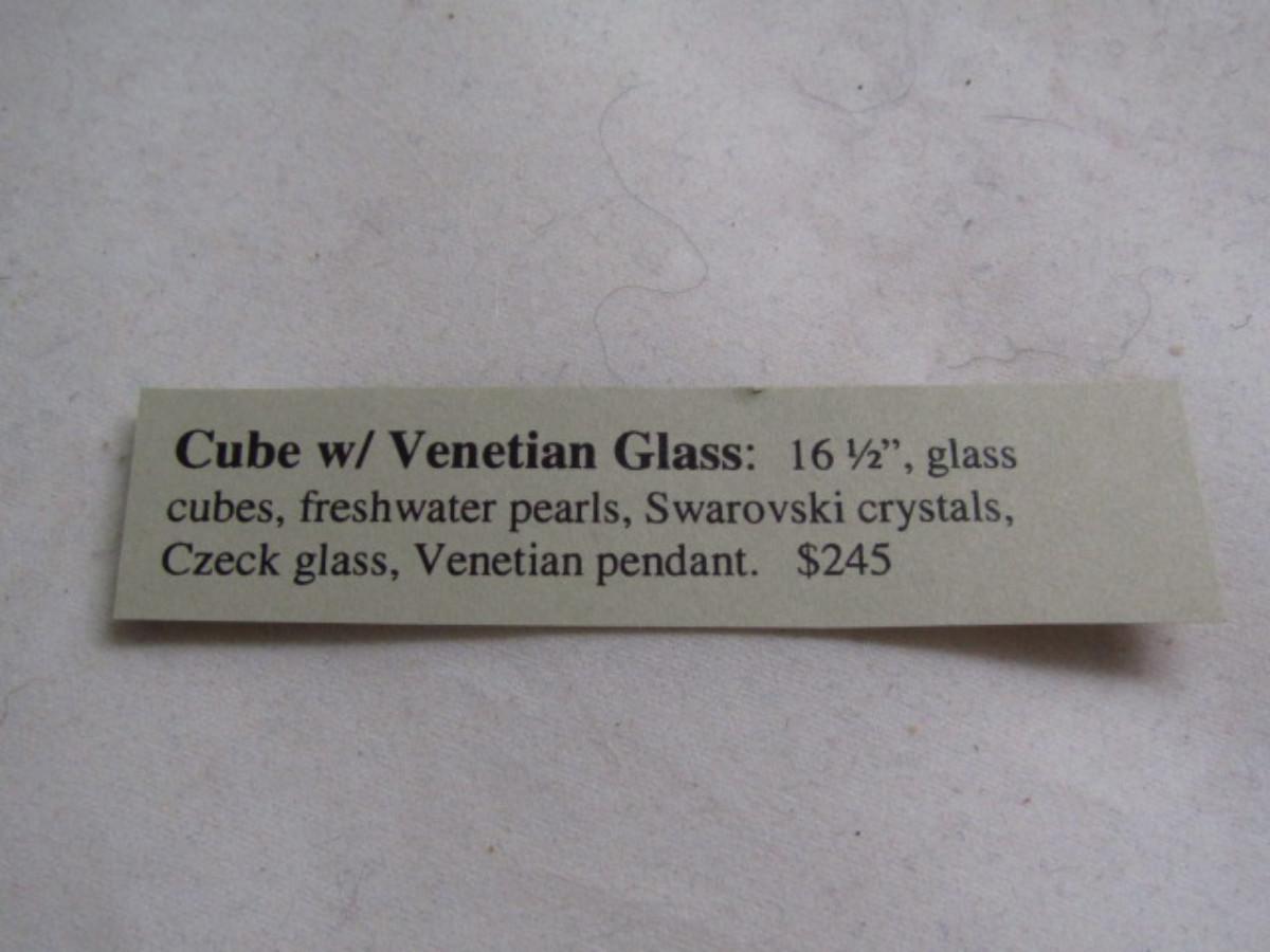 Hand Crafted Cube Style Necklace with Venetian Pendant (#9). Approx 16 1/2" long. Design includes pearls, Swarovski crystals, Czech glass.