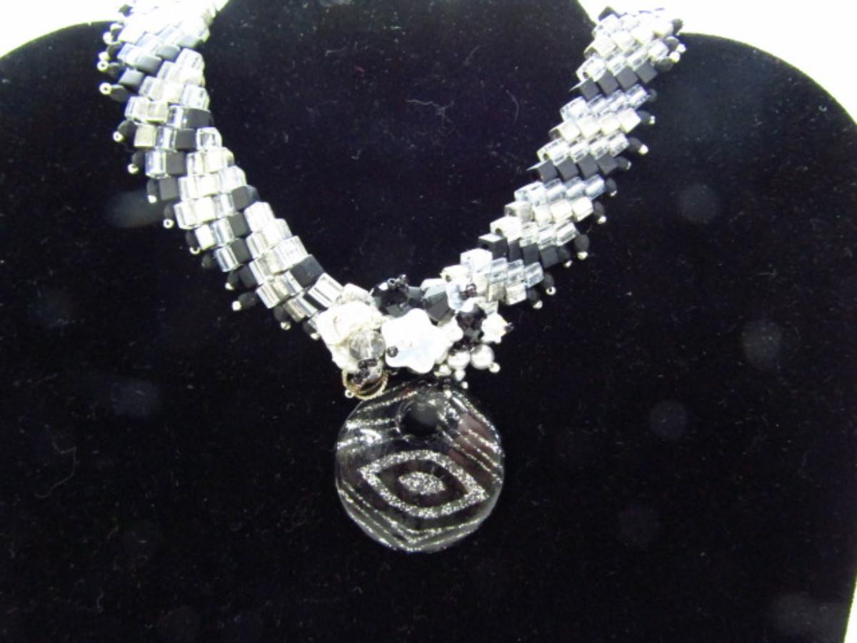 Hand Crafted Cube Style Necklace with Venetian Pendant (#9)