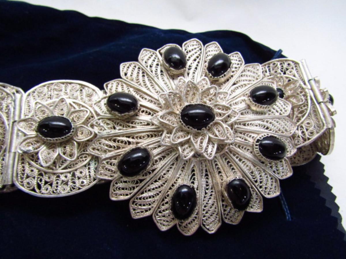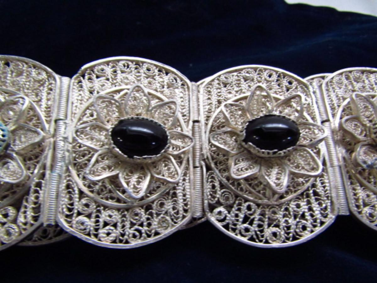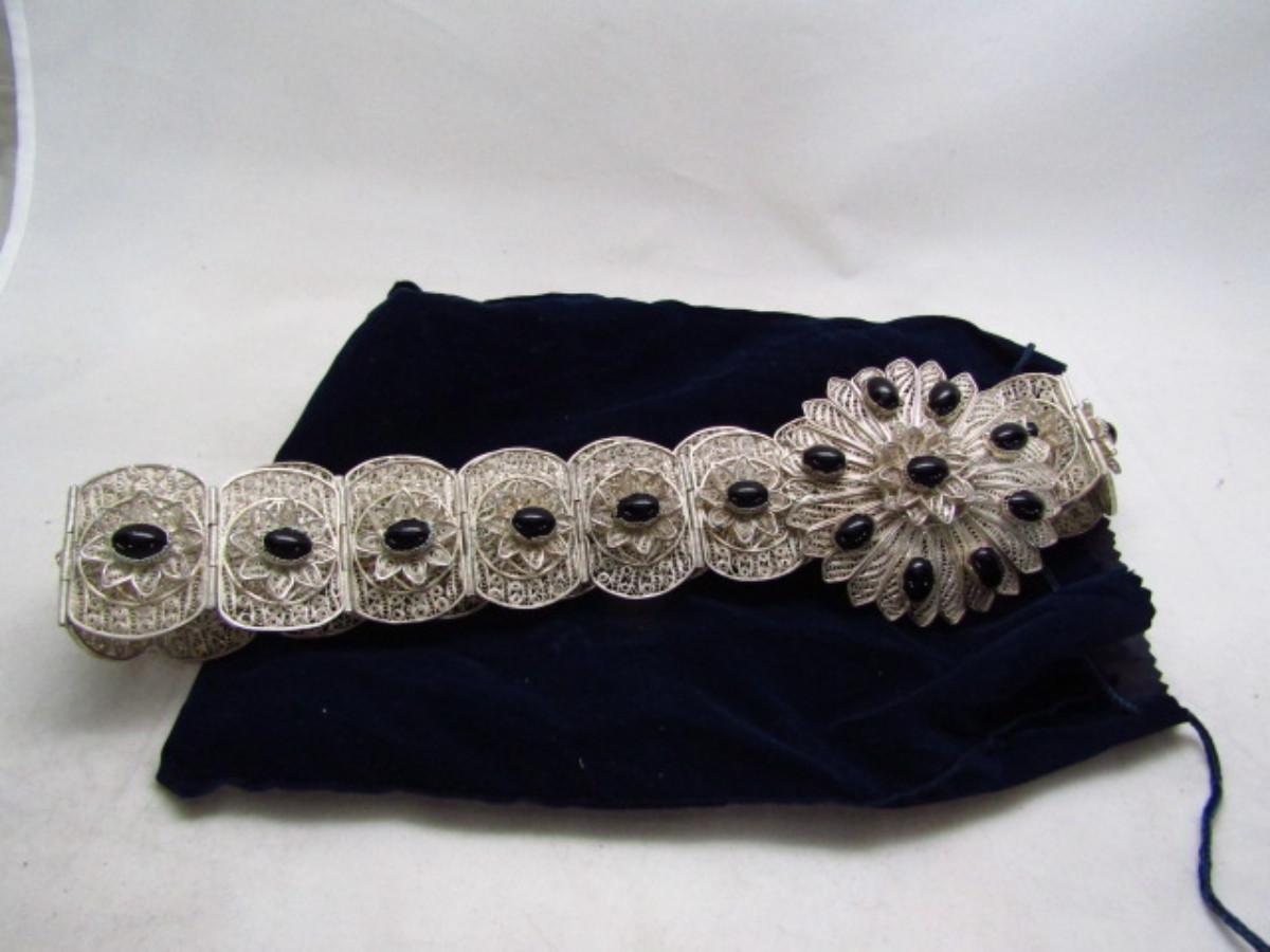 Hand Crafted Egyptian Belt- Filigree and Onyx- Approx 38" Long (#11)