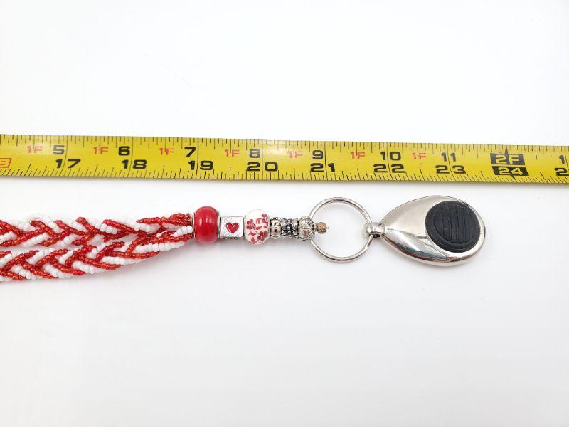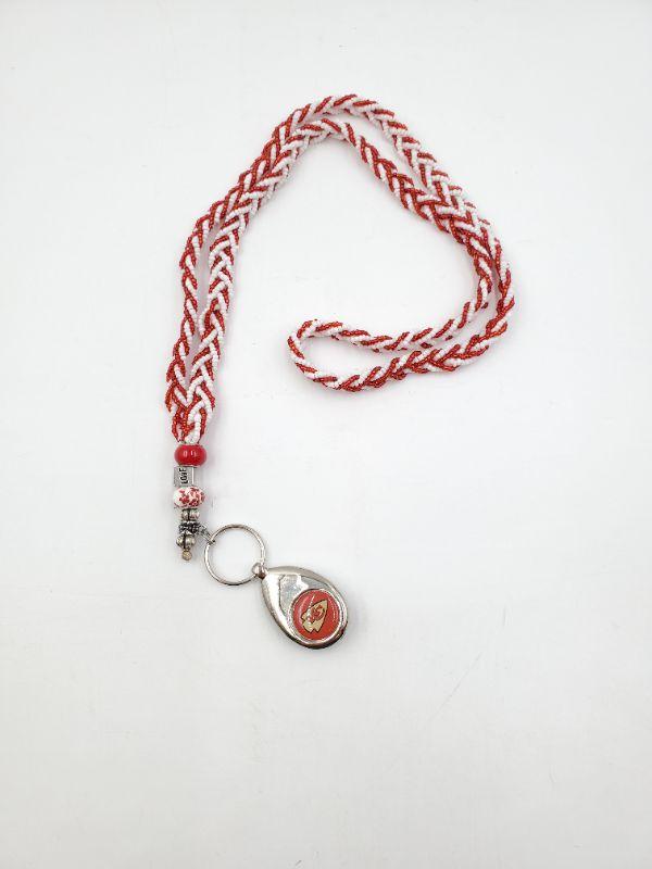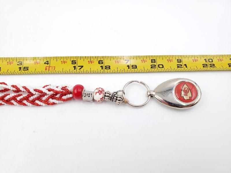 Pretty red and white glass hand beaded 20in lanyard with removable Chiefs keychain. Very nice!
