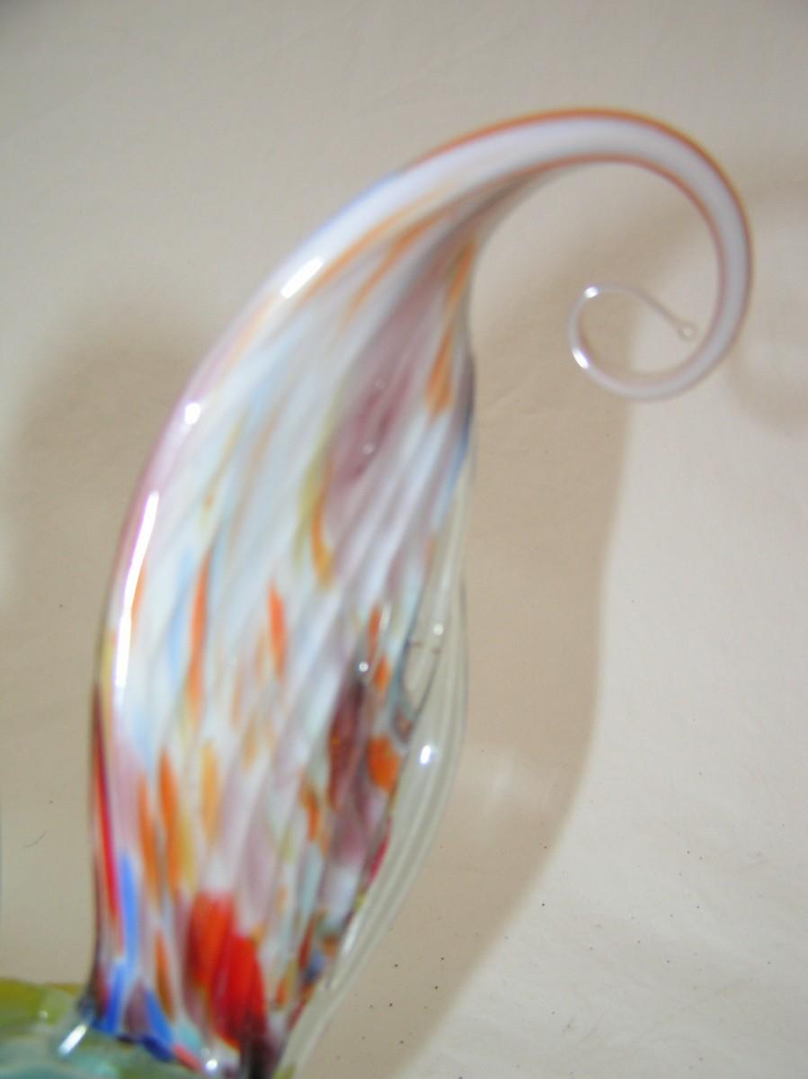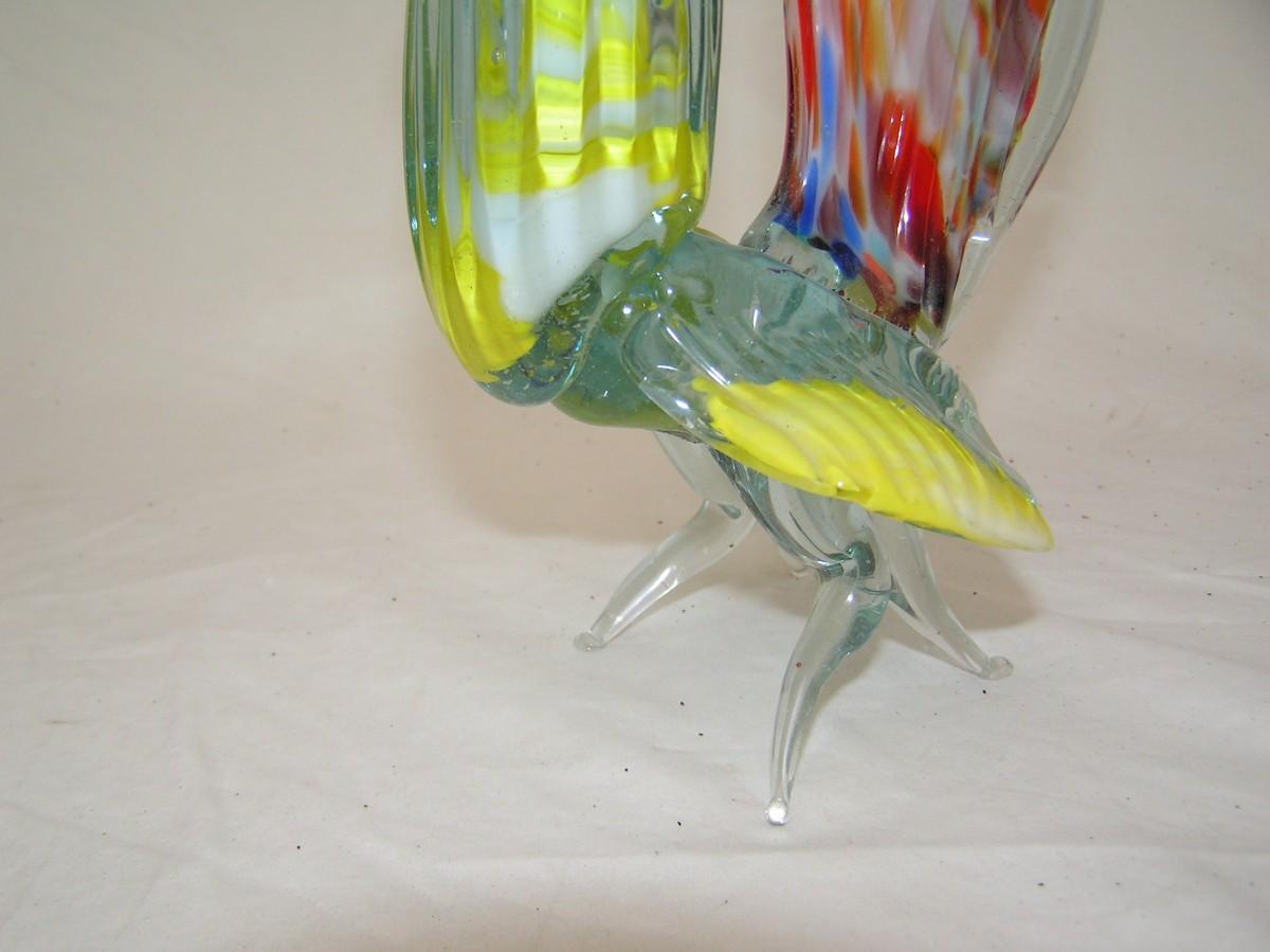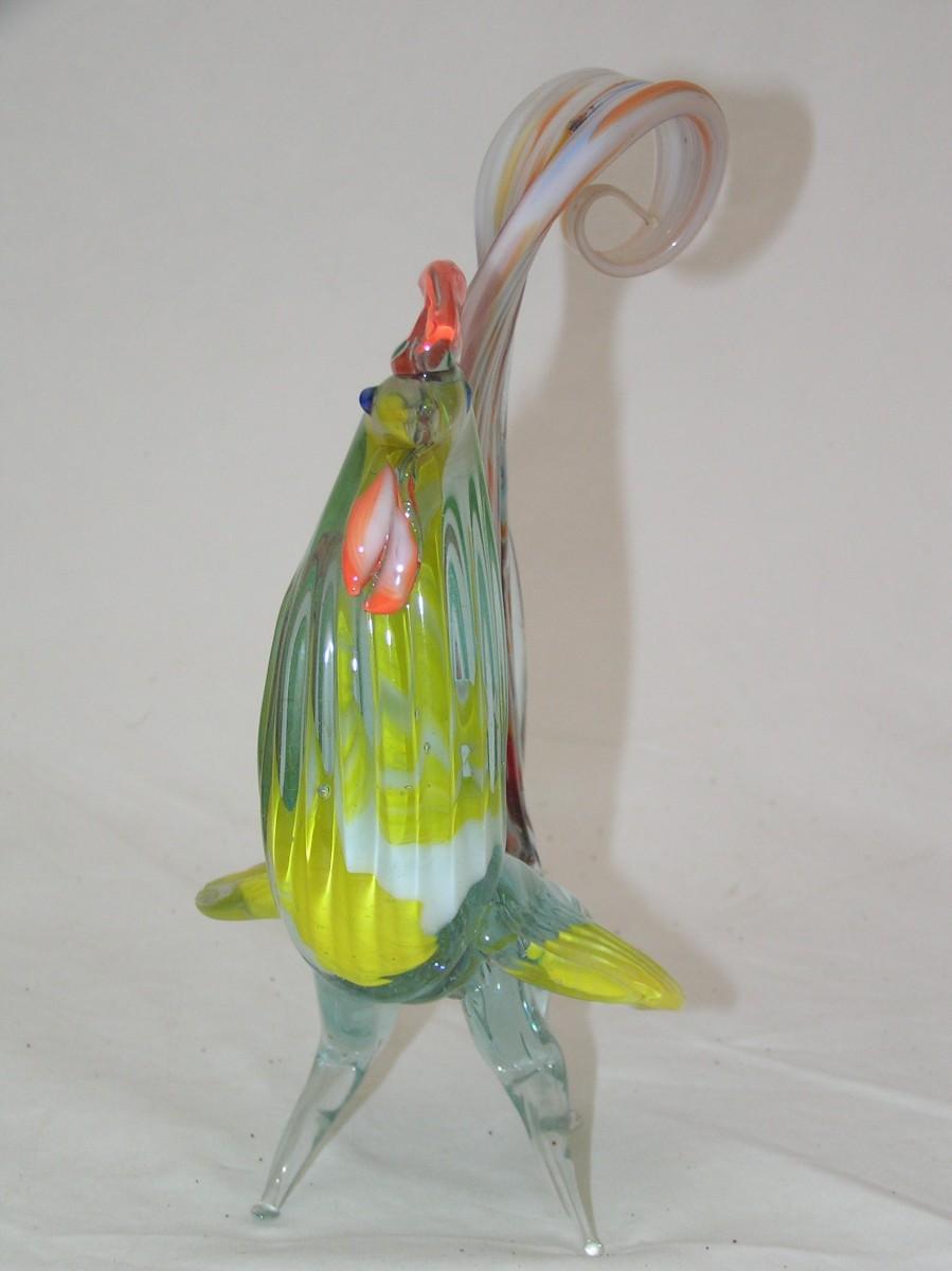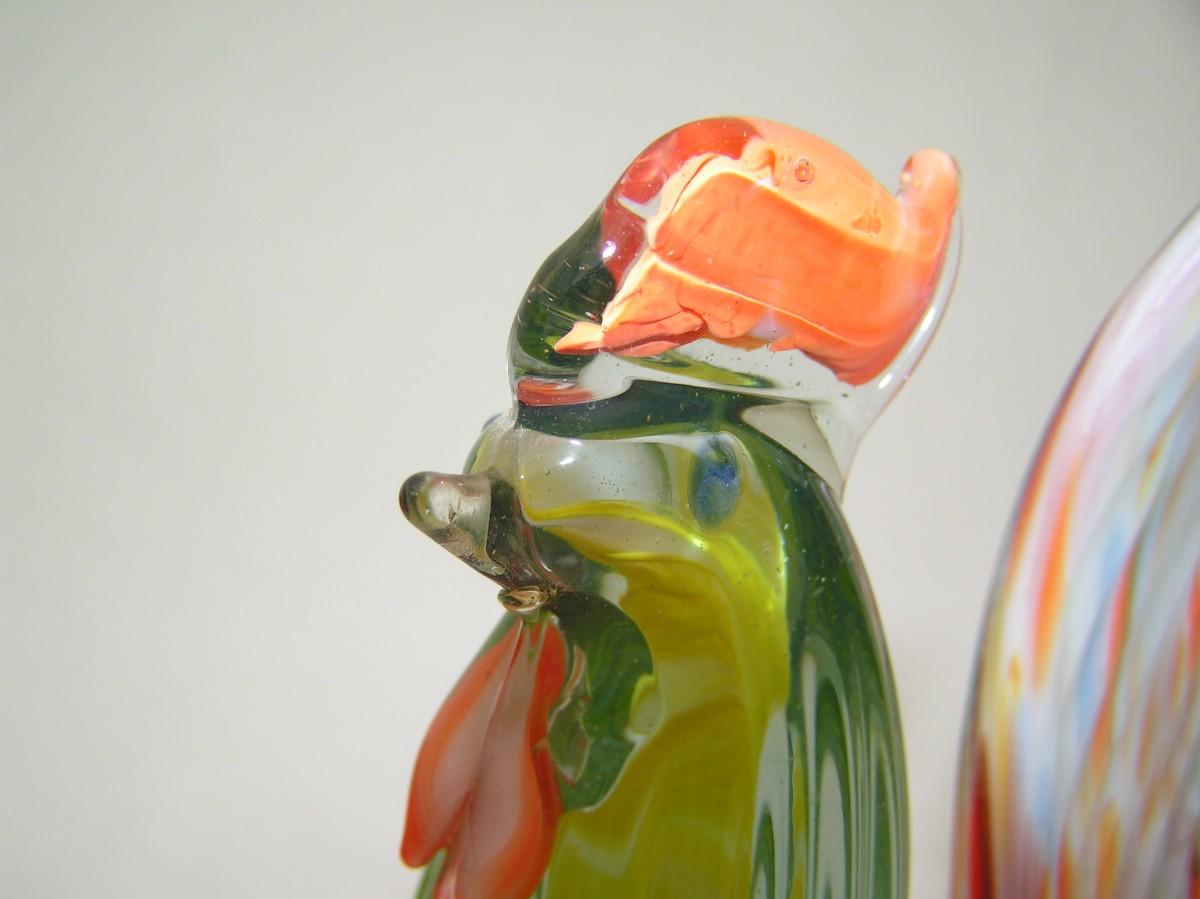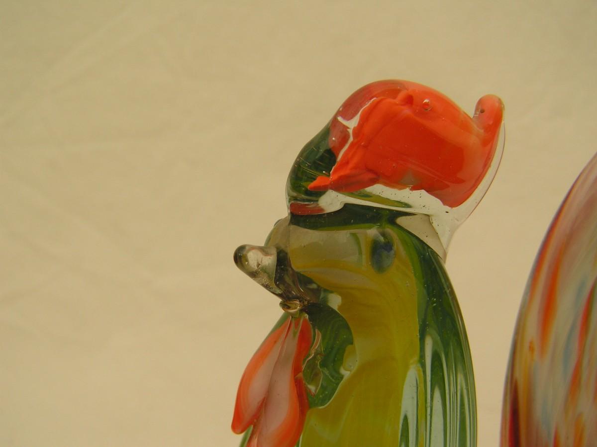 Colorful hand crafted decorative glass chicken figurine. This one is believed to be from Murano Island, Italy. Roosters are believed to bring Good Luck. Stands about 8-3/4" tall at tail.
