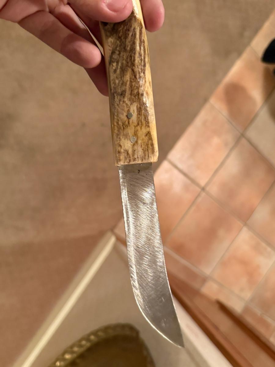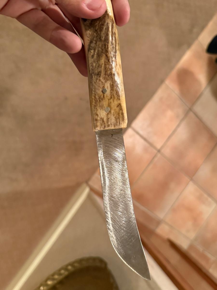 Hand Crafted knife by Robert Horassi w/leather & bead sheath