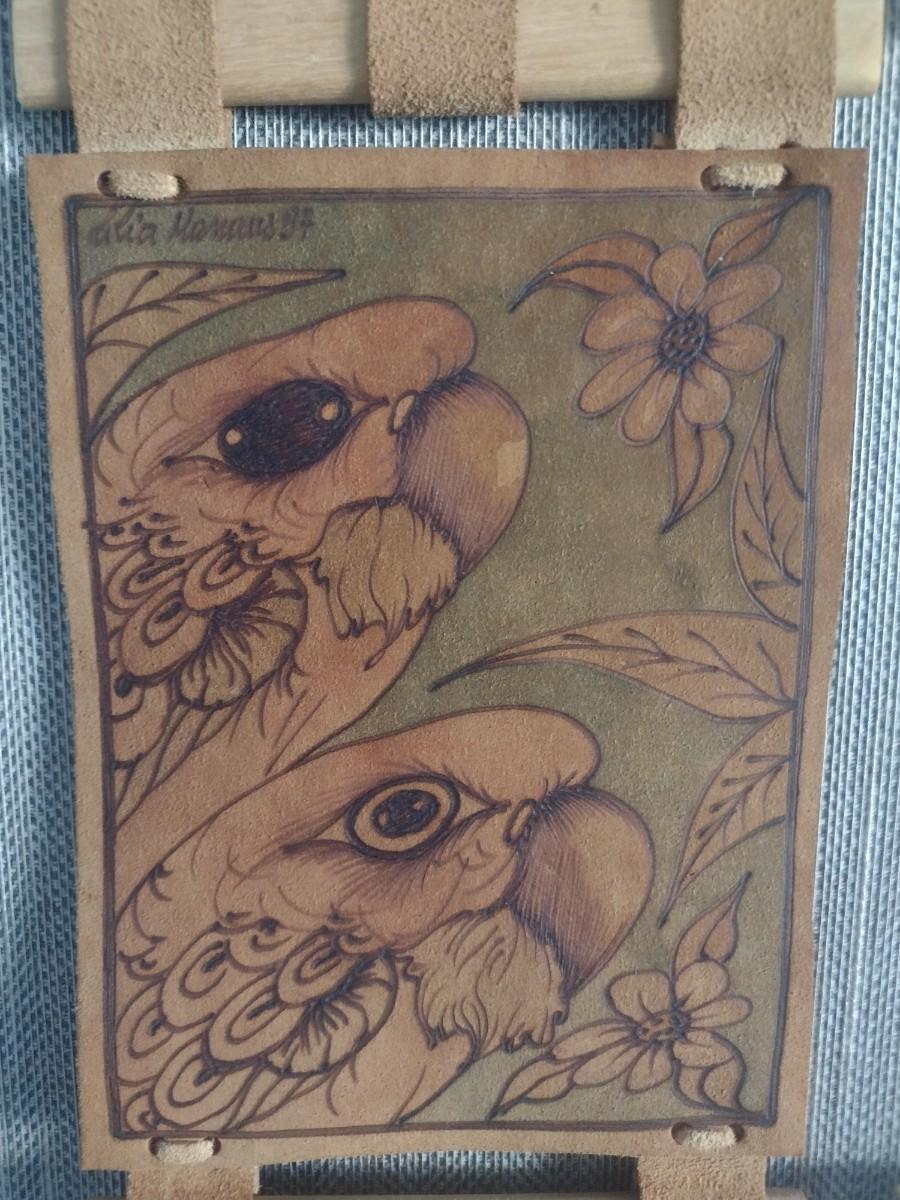 Hand Crafted Leather and Wood Wall Art Parrots