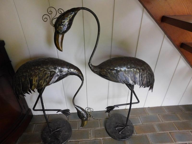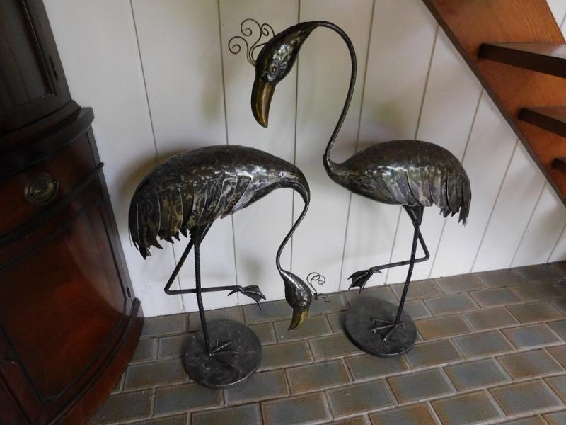 Hand Crafted Metal and Steel Cranes for Patio or Décor is a very nice set and appears like new. Heavy construction and nicely crafted. Made from sheet metal and steel rebar.