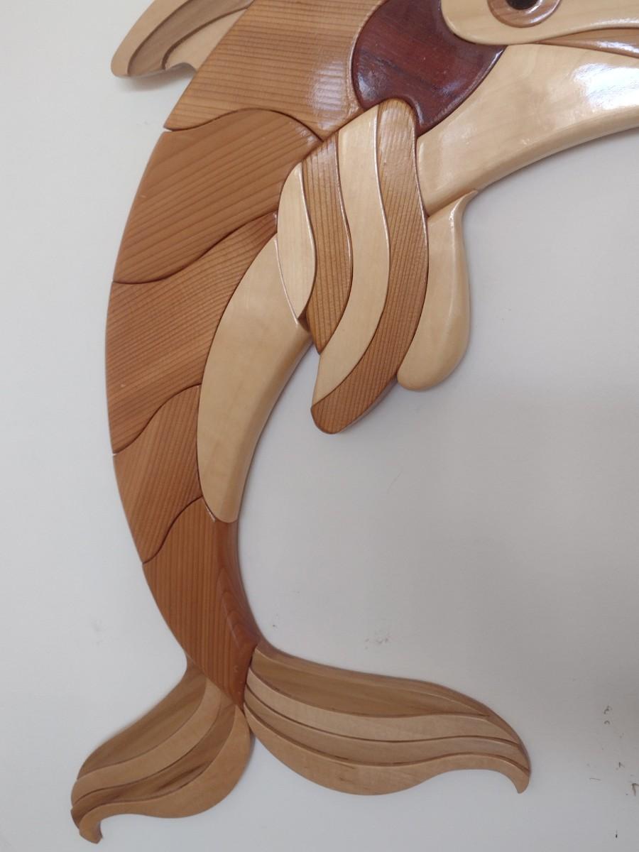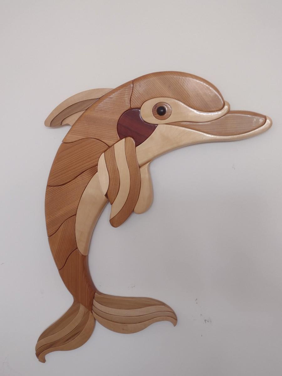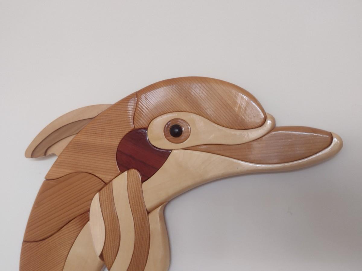 Hand Crafted Mixed Wood Dolphin Wall Art