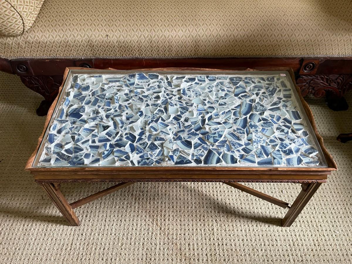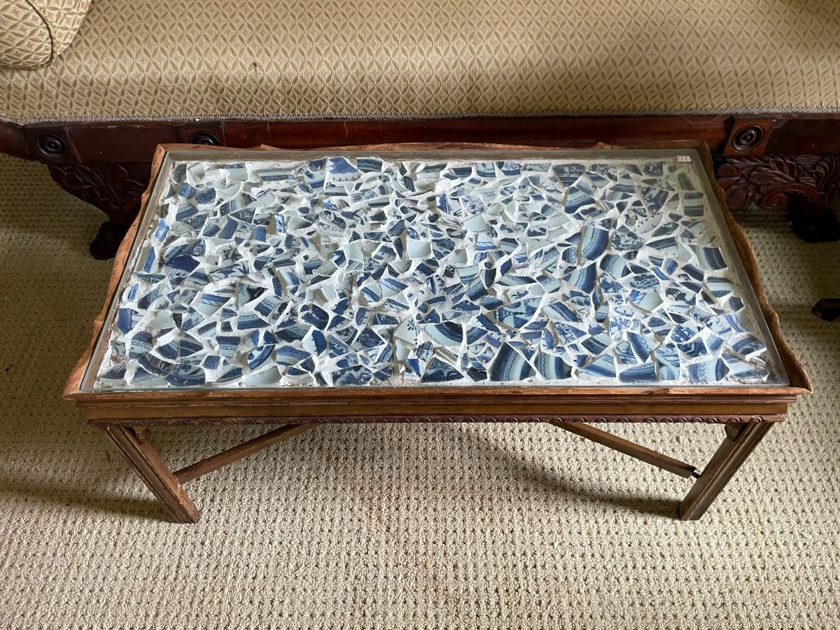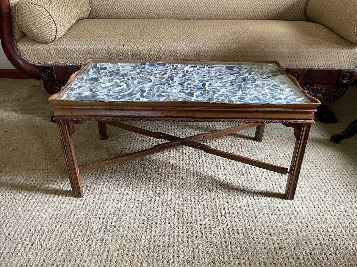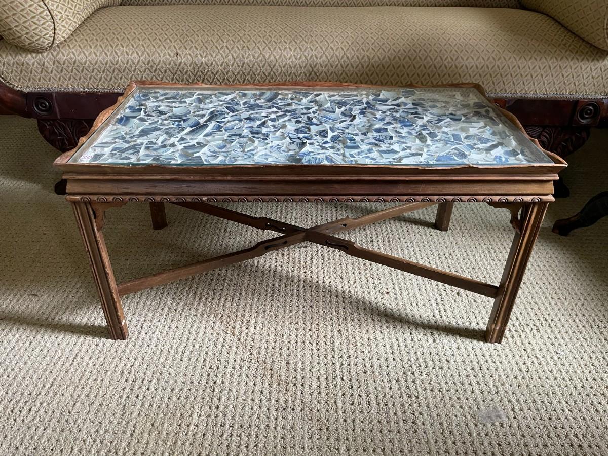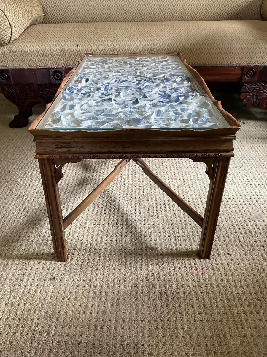 Beautiful Mosaic Glass Coffee Table. Does need some work done to the legs. 18"w x 34"l x 17"h