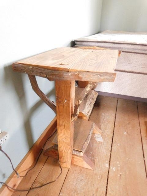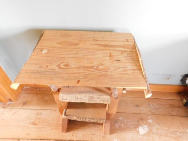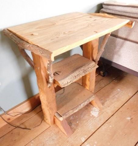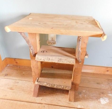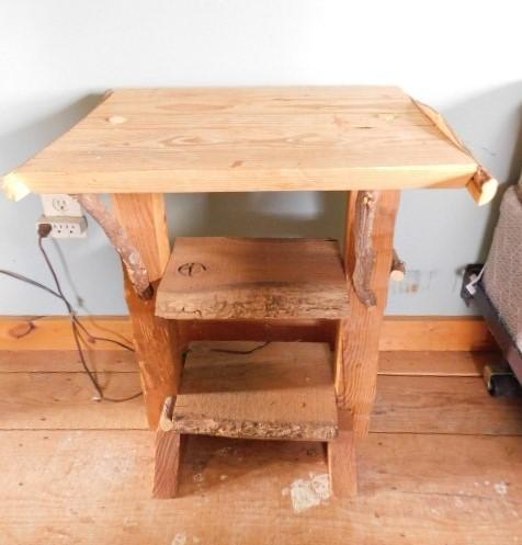 Hand Crafted Natural Wood Side Table with Live Edge Accents 20"x15"x24" ready for paint or finish. Upstairs item