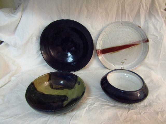 Hand Crafted Pottery- 3 Bowls and 1 Large Plate