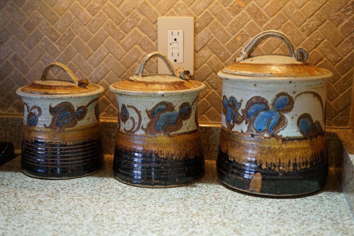 hand crafted pottery cannister set of three. These are hand made, safe to use