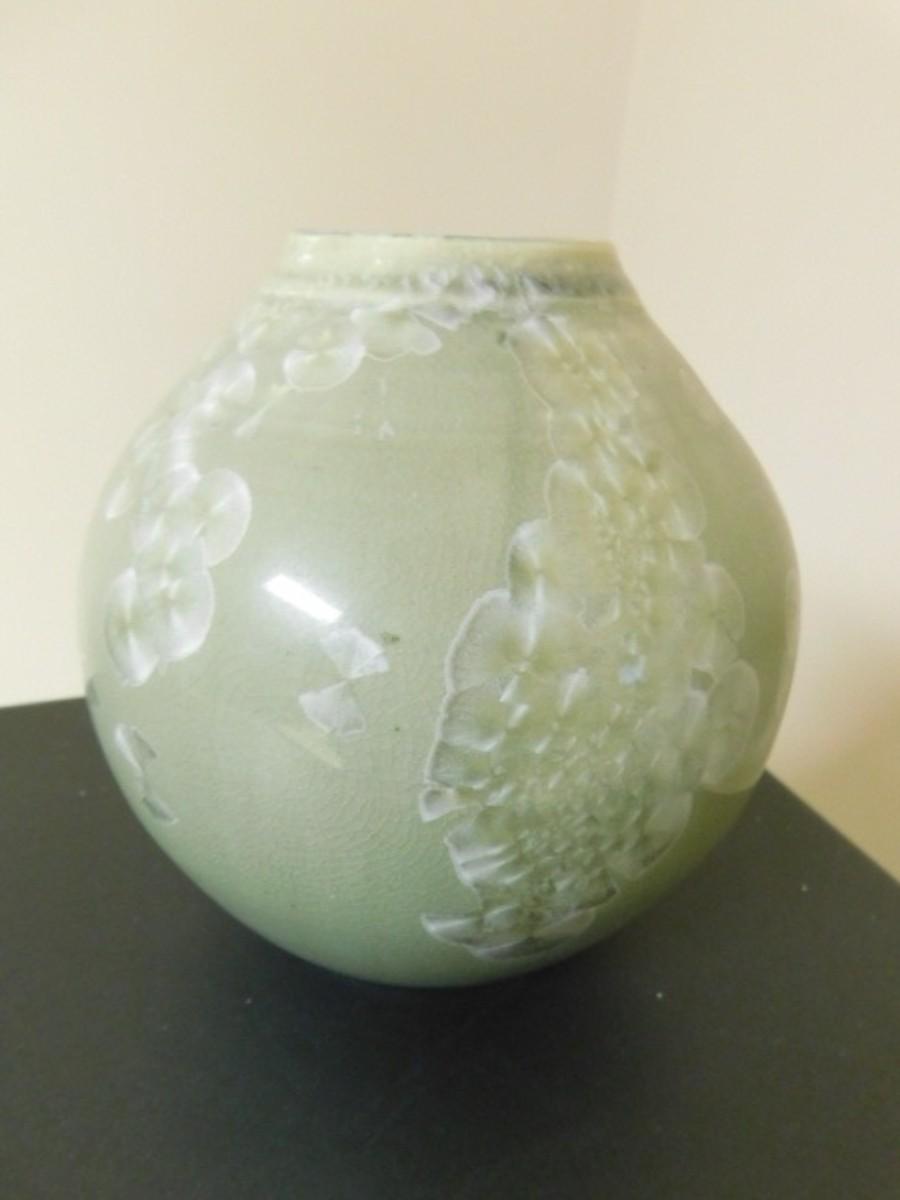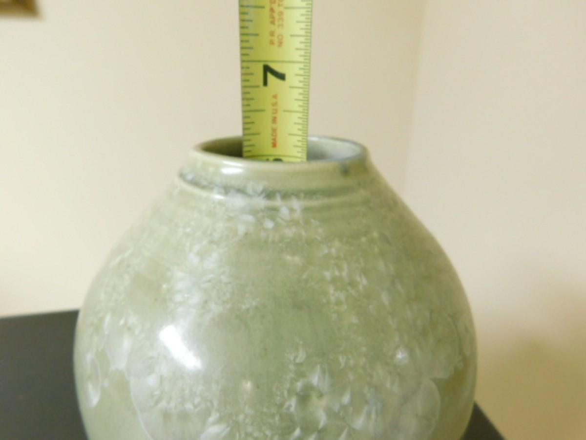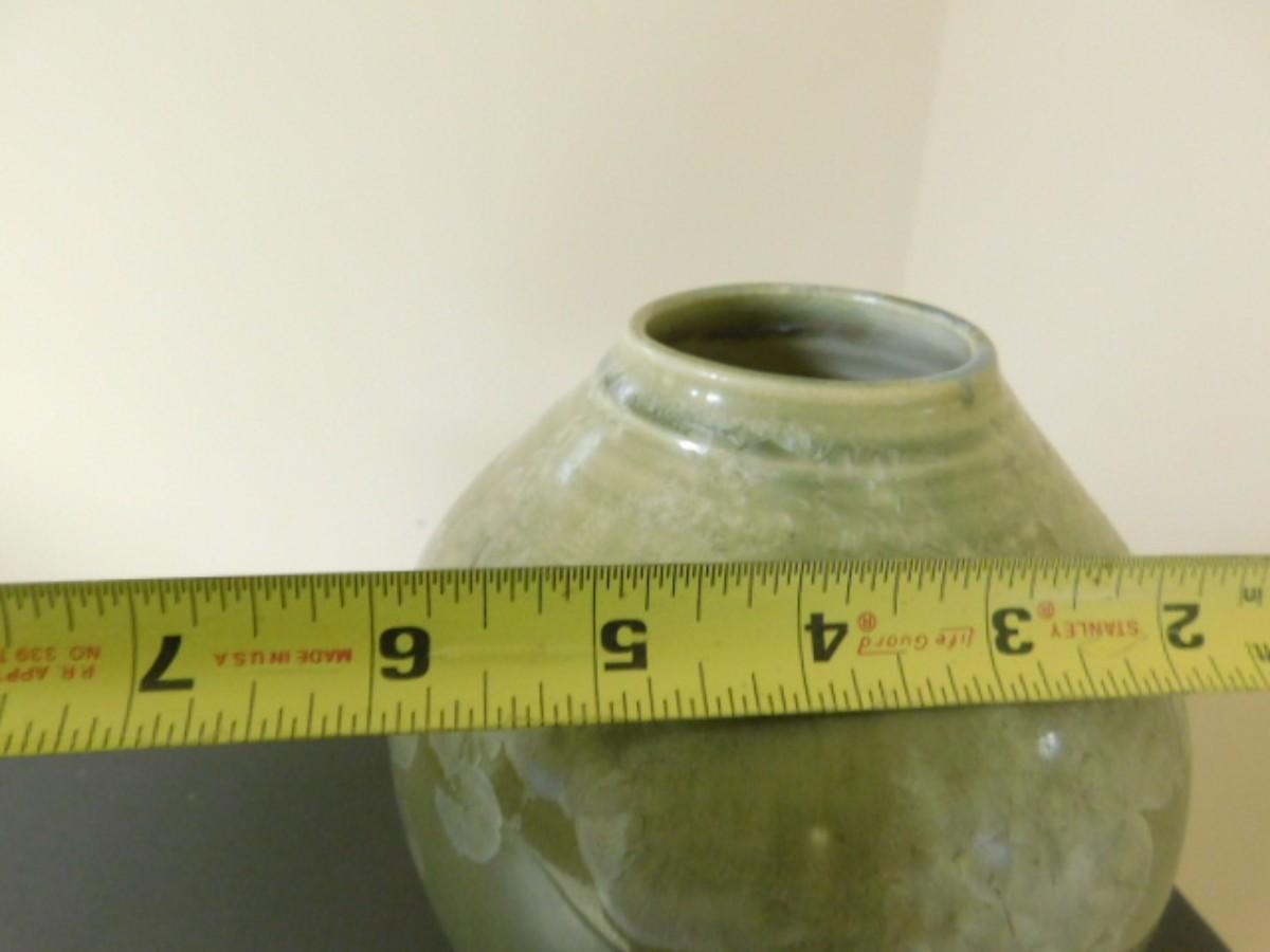 Hand Crafted Pottery Vase Signed Knudsui. A must see- has an irridescent/mother of pearl quality that cannot be adequately captured in pictures.