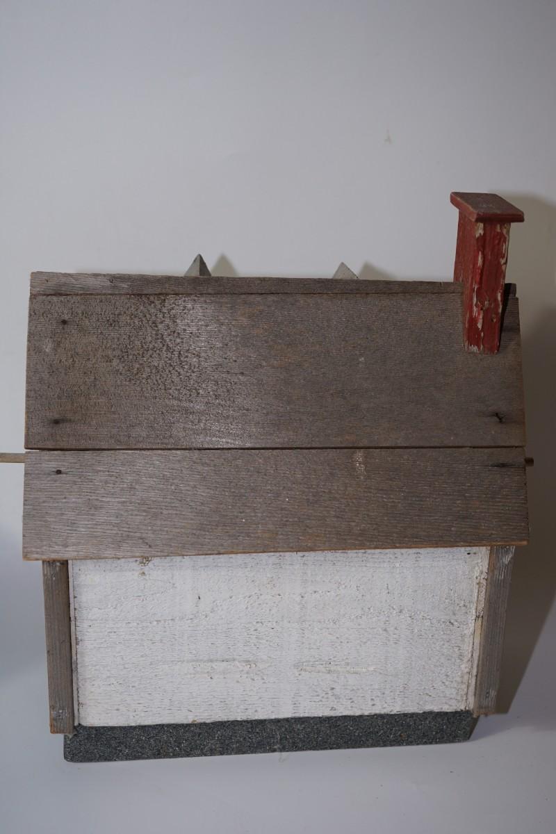 This is signed Ridel. I know the man who made these is from Wisconsin. They were made in the 1990's . made of old wood and crafted with open windows and shutters.