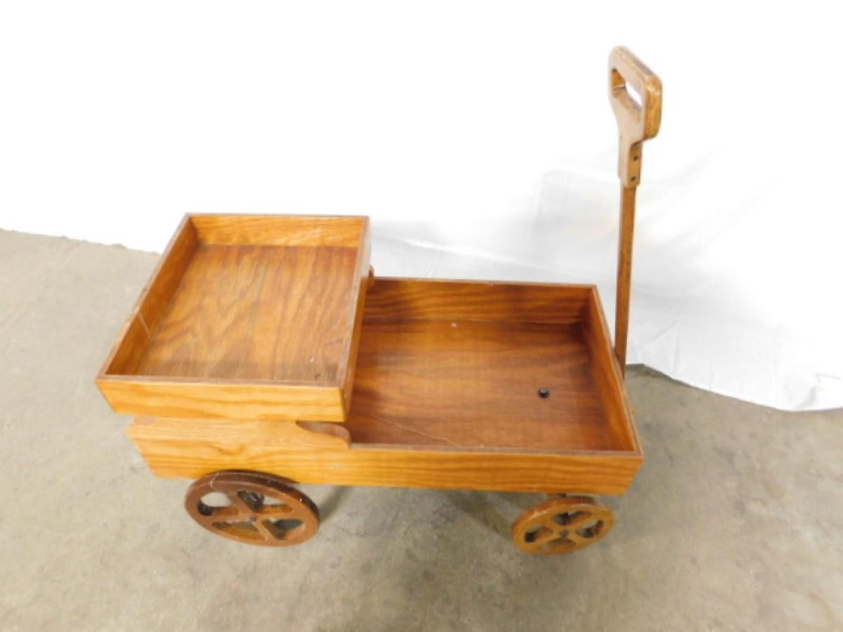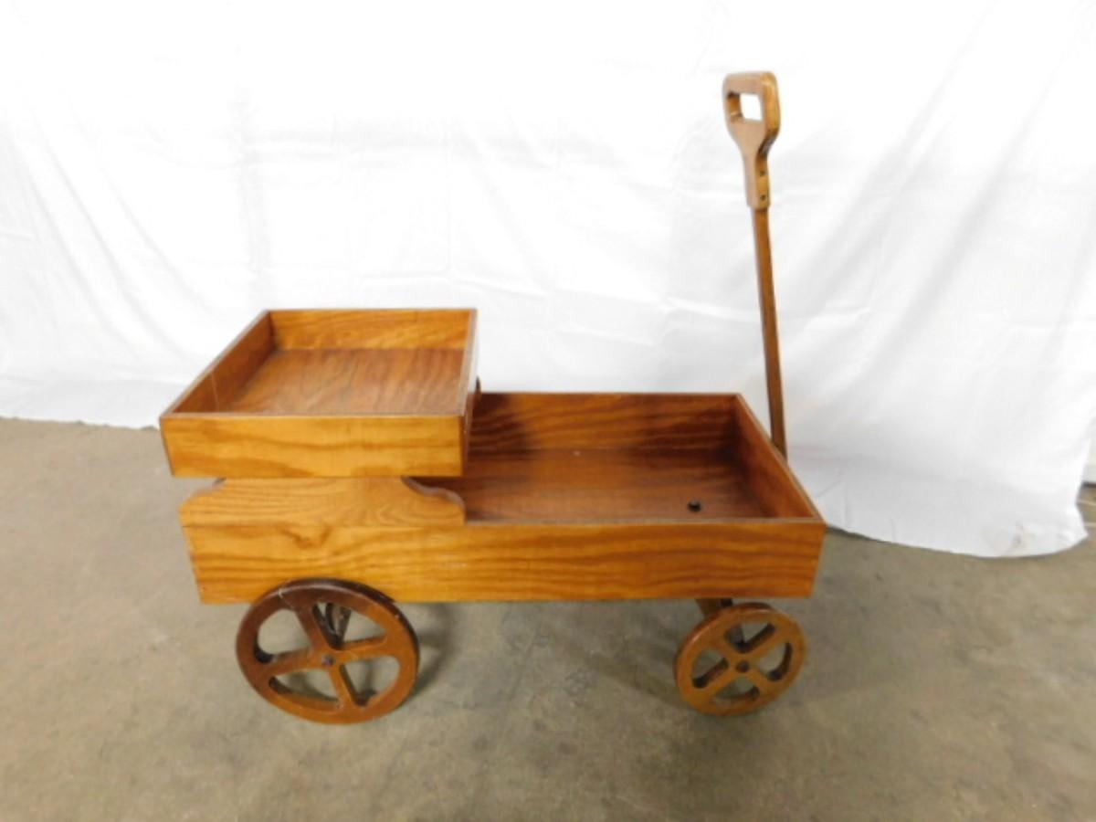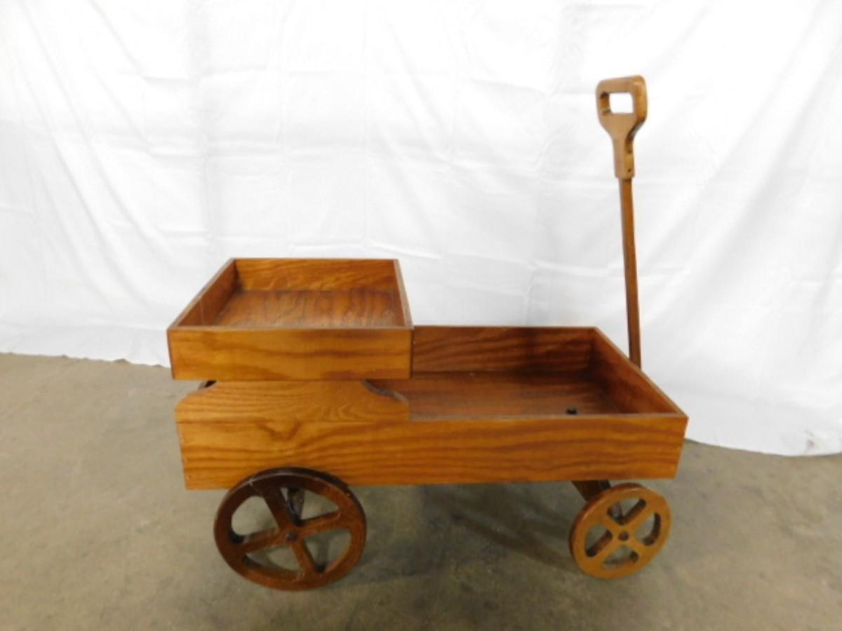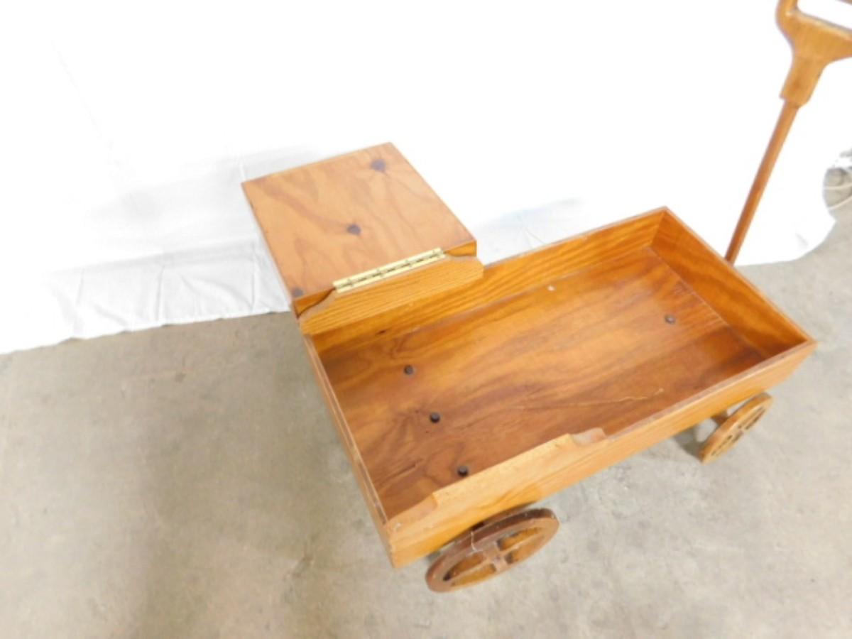 Hand Crafted Solid Wood Pull Wagon with Hinged Seat