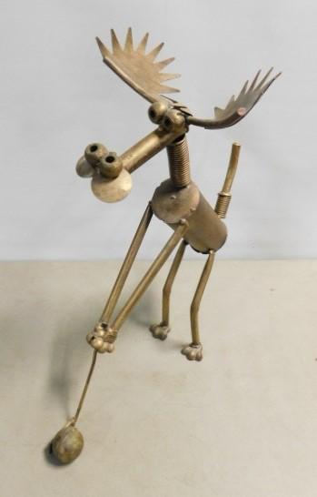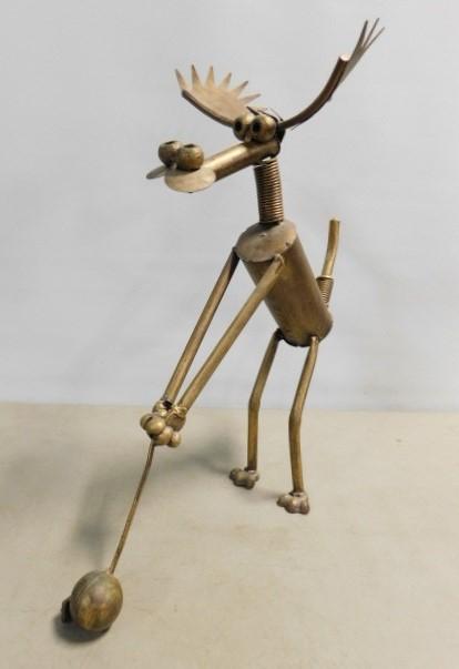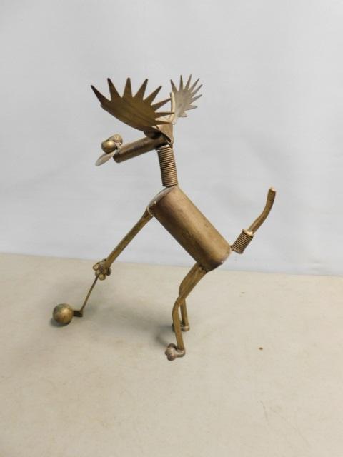 Hand Crafted Steel Industrial Salvage Parts Golfing Moose Figurine 19"x14"